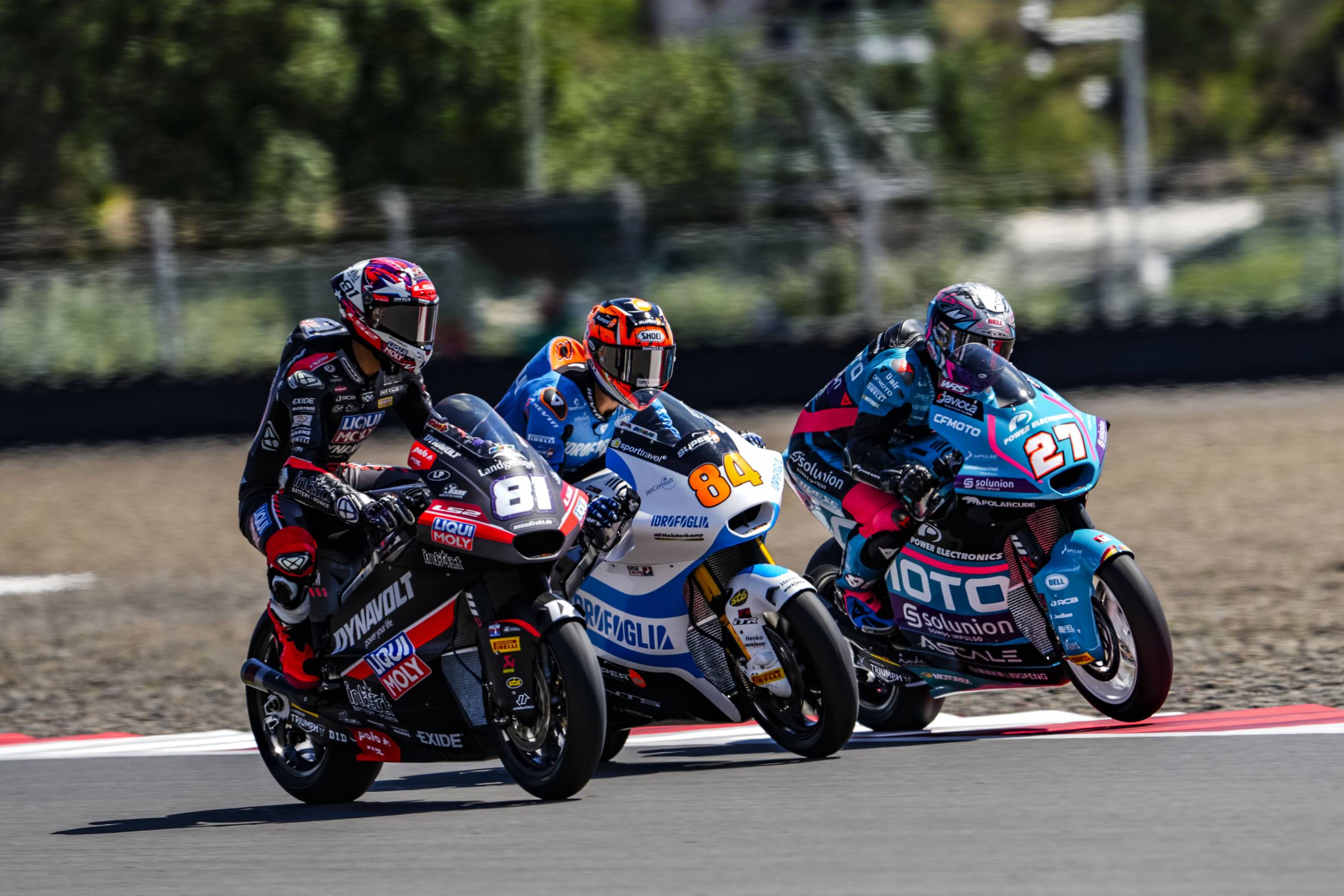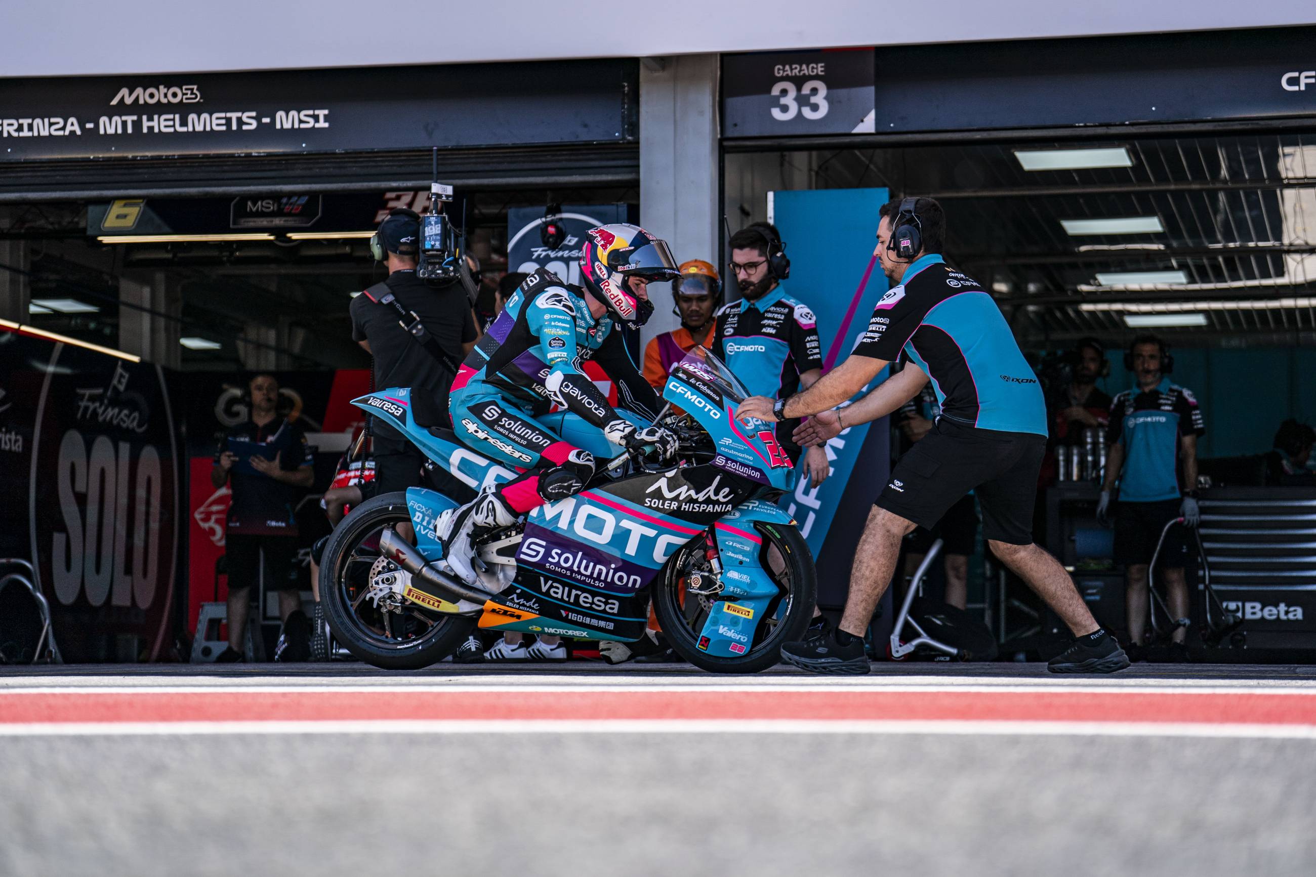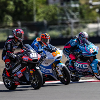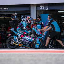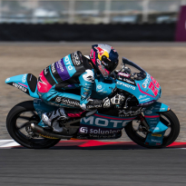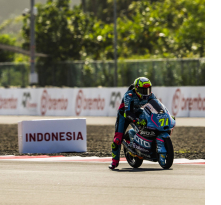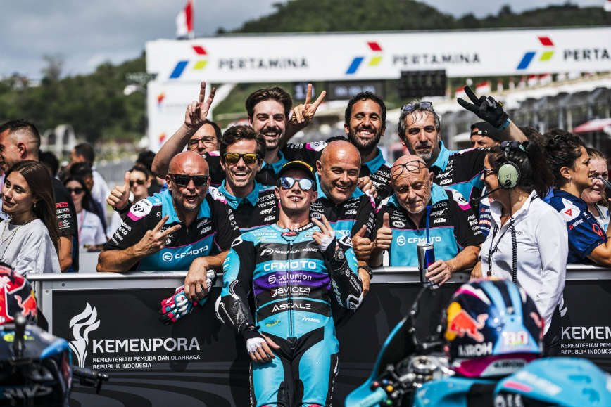 El CFMOTO Power Electronics Aspar continúa en plena forma en Indonesia. David Alonso y Dani Holgado han comenzado esta segunda jornada con los deberes hechos y con la Q2 asegurada. Los dos debutantes continúan trabajando intensamente para llegar a la carrera del domingo con las mejores garantías, y así lo han demostrado en el entrenamiento libre de esta mañana, en el que Alonso ha sido el segundo piloto más rápido y Holgado el quinto. Por la tarde, ambos han disputado el entrenamiento cronometrado convencidos de poder conseguir un gran resultado. Alonso ha establecido el tiempo de referencia en los primeros minutos y ha soñado con la pole hasta los últimos instantes. El colombiano, que ha rodado por debajo del 1:33 por primera vez en el fin de semana en su primera vuelta en el entrenamiento cronometrado, no se ha rendido y ha tratado de mantener la posición hasta los últimos instantes, pero con su 1:32.499 se ha quedado a una décima de la pole. De esta forma, Alonso ha conseguido su mejor resultado en un cronometrado en esta temporada y comenzará la carrera desde la primera fila por segunda vez consecutiva. Por otro lado, Dani Holgado ha vuelto a demostrar que es uno de los pilotos más constantes de la categoría. El también debutante ha llegado a ocupar las posiciones provisionales de primera fila junto a su compañero y ha mantenido un gran ritmo a lo largo de todo el día. Con un tiempo de 1:32.671, su mejor marca en Indonesia, el piloto del CFMOTO Power Electronics Aspar partirá desde la quinta posición.