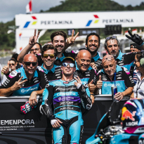 David Alonso ha conseguido su mejor resultado en un cronometrado desde su debut en Moto2, solo siete días después de haber logrado la tercera posición de la parrilla en el Gran Premio de Japón, y saldrá desde la primera fila de la parrilla por segunda vez consecutiva. El piloto del CFMOTO Power Electronics Aspar Team se ha quedado a una décima de su primera pole y comenzará la carrera del Gran Premio de Indonesia desde la segunda posición, por detrás de Diogo Moreira. El brasileño ha conseguido su quinta pole del año en el último suspiro del entrenamiento. Los acompañará Izan Guevara, quien, como Alonso, también hoy ha logrado su mejor resultado en un sábado desde que compite en Moto2. Dani Holgado también ha luchado por el top 3 hasta el final y finalmente comenzará la carrera desde la quinta posición.