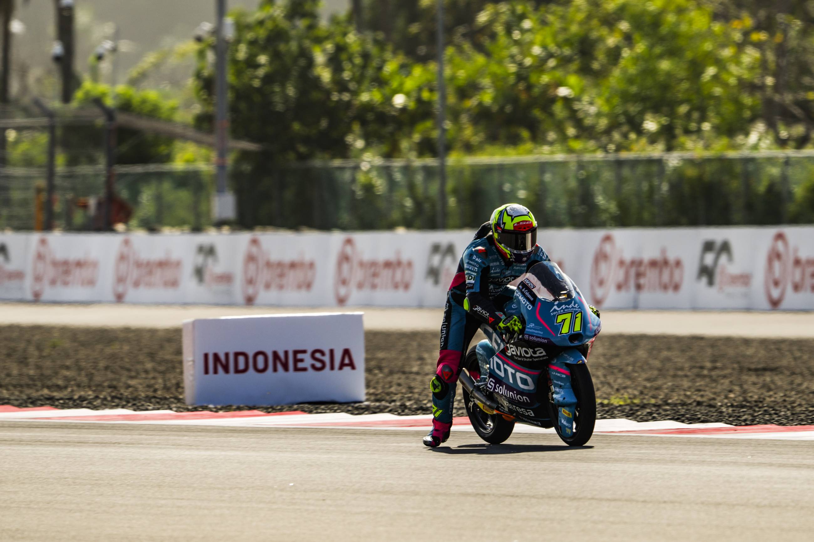 5º Dani Holgado 1:32.671 (+0.330): "Hemos terminado el segundo día en Indonesia con muy buenas sensaciones. En el simulacro de carrera de esta mañana he tenido muy buen ritmo y he hecho mi vuelta rápida en la duodécima vuelta. Estoy muy contento tanto con mi trabajo como con el del equipo. Salgo quinto y es una buena posición de inicio para luchar por un buen resultado. Tenemos otra oportunidad para seguir creciendo e intentaremos aprovecharla para coger toda la experiencia posible, hacer una buena carrera y disfrutarla".