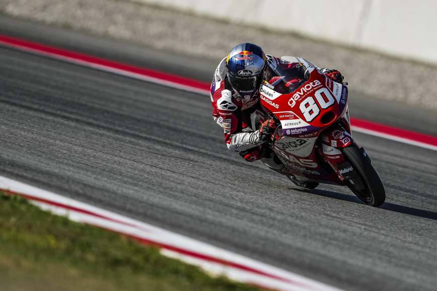 El piloto del Gaviota GASGAS Aspar David Alonso ha comenzado el Gran Premio de Cataluña con buen pie. El colombiano ha rodado en solitario durante gran parte de las sesiones y ha trabajado en su ritmo de cara al domingo. Alonso ha cerrado el primer libre en la decimosexta plaza, pero por la tarde ha podido mejorar su tiempo en siete décimas y ha finalizado octavo. Su compañero en el Gaviota GASGAS Aspar, Ryusei Yamanaka, ha cerrado el primer día en Barcelona en la decimoctava plaza. El japonés se encontraba dentro de los puestos que daban acceso provisional a la Q2, pero no ha podido mejorar su registro por la tarde y se ha visto relegado a la decimoctava plaza. Pese a ello, Yamanaka se encuentra con fuerzas para conseguir mañana el acceso directo al segundo cronometrado.