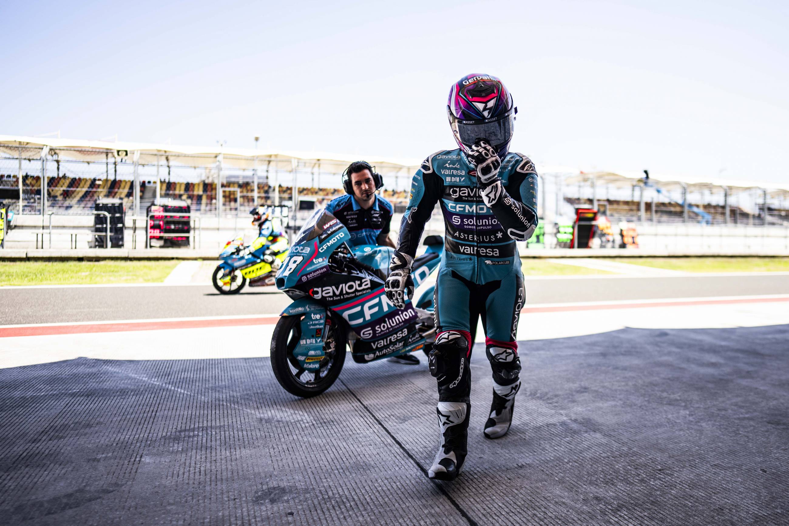 Su compañero de equipo Joel Esteban partirá mañana desde la octava fila. El piloto del CFMOTO Gaviota Aspar Team ha tenido que disputar la Q1, ya que, aunque en el último entrenamiento ha conseguido rebajar en ocho décimas su mejor registro de ayer, su tiempo no ha sido suficiente para entrar directamente en la Q2. En la Q1, Esteban ha terminado noveno, por lo que no ha conseguido el pase a la Q2. El catalán saldrá mañana desde la vigesimosegunda posición después de que el piloto británico Eddie O'Shea, que se estrenaba este fin de semana en Moto3, se haya lesionado y no pueda disputar la carrera. El joven debutante peleará por remontar con el objetivo de puntuar en un circuito en el que nunca antes ha competido.