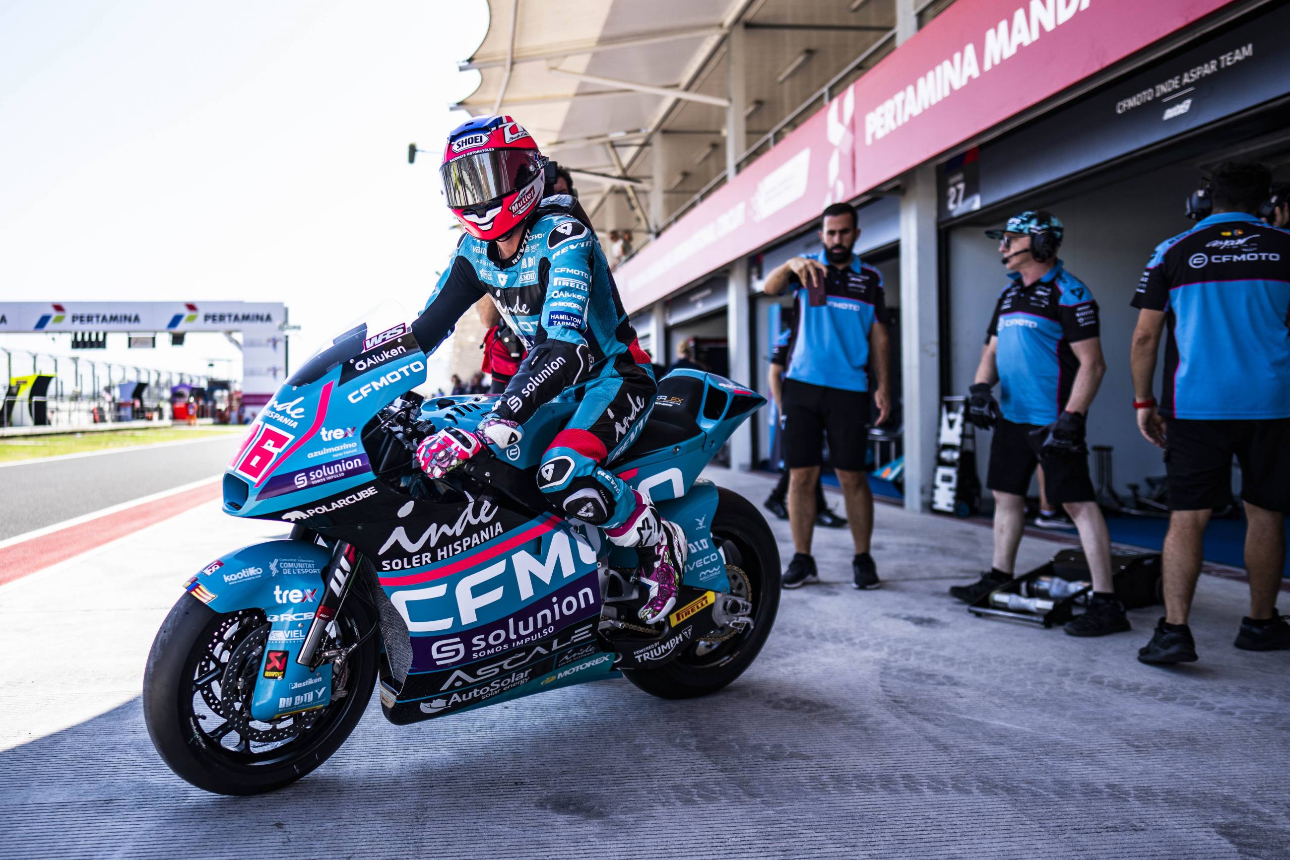 El CFMOTO Inde Aspar Team ha empezado con buen pie el Gran Premio de Indonesia, con ambos pilotos en posiciones provisionales de Q2. Jake Dixon ha sido competitivo desde el primer momento en Mandalika y ha permanecido siempre entre los diez primeros. En la sesión matinal ha acabado en novena posición y, por la tarde, ha podido escalar hasta la sexta plaza. El británico se ha quedado a solo tres décimas del mejor crono, pero quiere más y mañana confía en poder dar un paso al frente que le permita luchar por las posiciones de cabeza. Su compañero de equipo Izan Guevara ha terminado el primer día en Mandalika en duodécima posición. El piloto del CFMOTO Inde Aspar Team ha logrado un gran progreso de una sesión a otra: esta mañana ha terminado a 1,2 segundos del mejor tiempo, mientras que, por la tarde, ha conseguido reducir la diferencia hasta las seis décimas. El mallorquín, que ha completado uno de sus mejores viernes del año, ha terminado contento con el trabajo realizado, pero sabe que aún tiene margen de mejora, especialmente en el segundo sector.