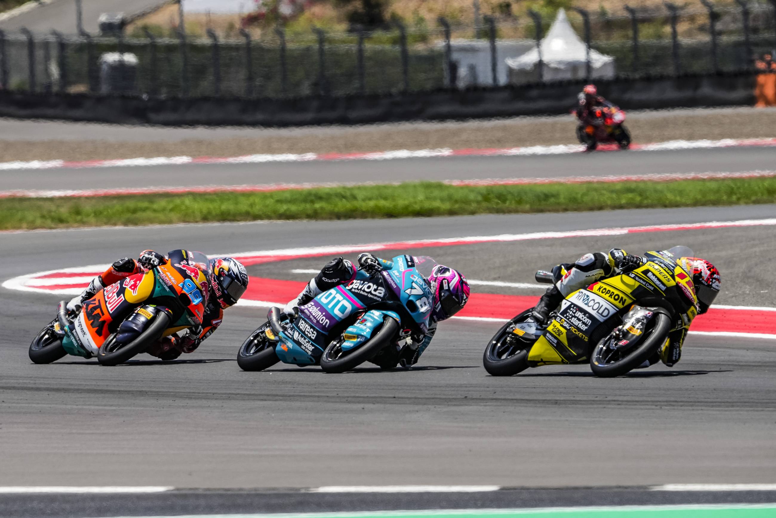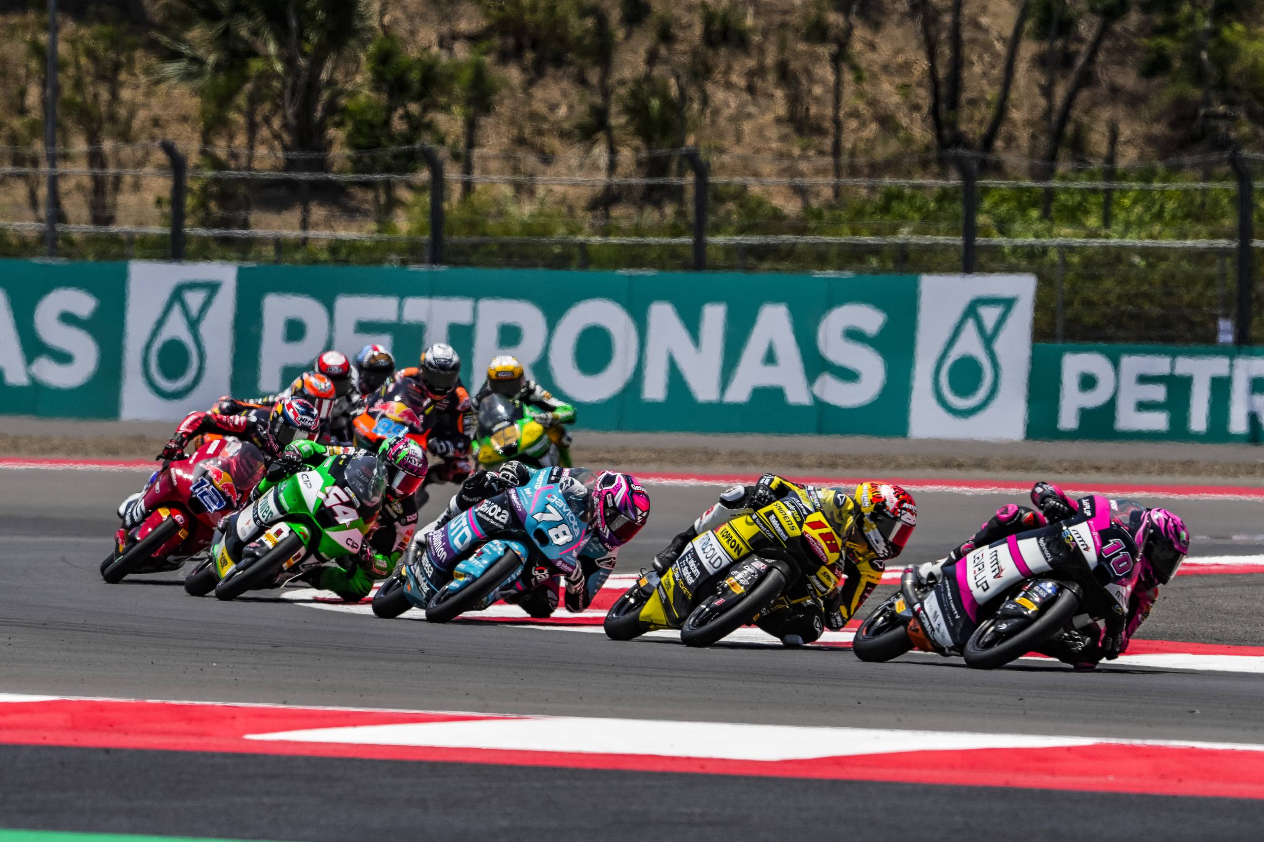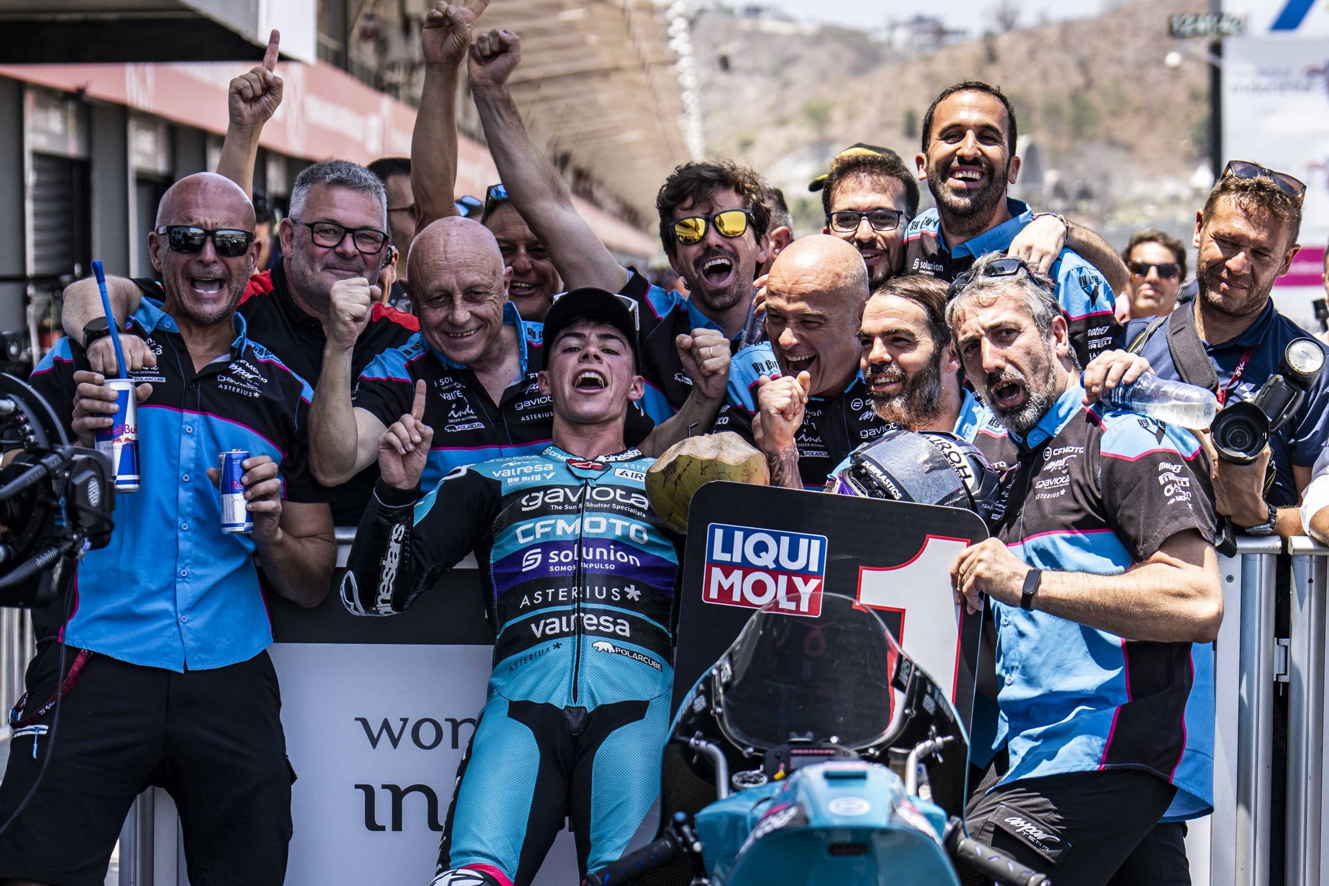 Catar, Estados Unidos, Francia, Cataluña, Italia, Alemania, Austria, Emilia – Romaña y, ahora, Indonesia. El piloto del CFMOTO Gaviota Aspar Team David Alonso ha sumado su novena victoria del año en el Gran Premio de Indonesia, una victoria que le permite tener la primera oportunidad de cerrar matemáticamente el título de Moto3 el próximo fin de semana en Japón. El Gran Premio de Indonesia no empezó de la mejor manera para el líder del Mundial, pero Alonso ha sabido darle la vuelta de la mejor forma posible. Alonso, que partía desde la quinta posición, ha estado siempre en el grupo de cabeza, que ha estado formado por hasta diez pilotos. No ha estado en ese pelotón el piloto que salía desde la pole, Iván Ortolá, que ha tenido que cumplir tres penalizaciones. Durante la primera parte de la carrera, ha sido Collin Veijer quien ha liderado, hasta que se ha ido al suelo a falta de nueve vueltas para el final. El resto de pilotos del grupo ha lidiado una intensa batalla por las nueve primeras posiciones, una pelea en la que podían pasar de liderar a cerrar el pelotón en un suspiro. De hecho, el piloto del CFMOTO Gaviota Aspar Team ha llegado a ocupar la séptima posición. Sin embargo, una vez más, Alonso ha vuelto a mostrar su magia en los compases finales. Poco a poco ha ido situándose en las primeras plazas y, en el último giro, ha superado a Adrián Fernández y a David Muñoz para ponerse al frente. En los últimos metros, el colombiano no ha dado opción a sus rivales y ha añadido Mandalika a su palmarés de victorias, convirtiéndose así el piloto con más victorias en la historia de Moto3, empatado con Romano Fenati. Fernández y Muñoz han completado el podio, mientras que los rivales de Alonso en el Mundial han terminado más retrasados: Dani Holgado ha sido sexto e Iván Ortolá, noveno.
