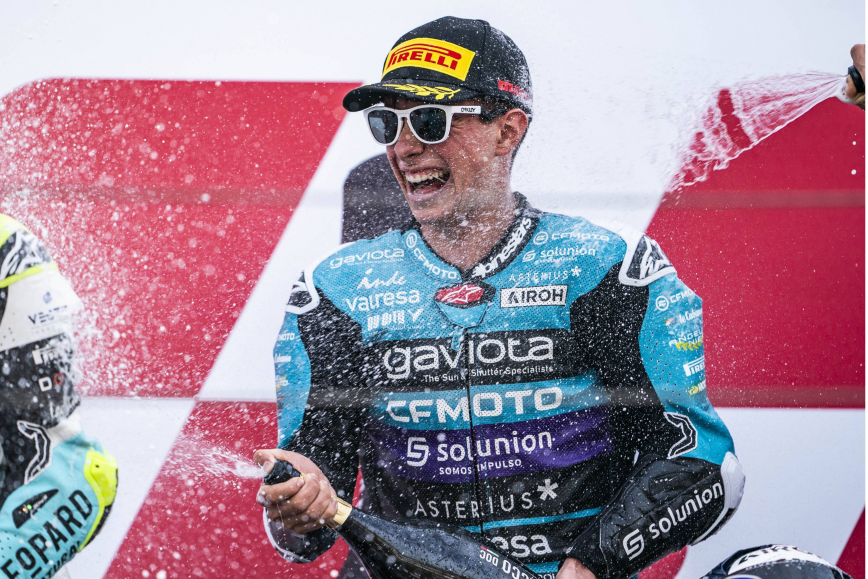 El piloto del CFMOTO Gaviota Aspar Team ha sumado su octava victoria de la temporada y ya tiene 82 puntos de ventaja al frente del Mundial