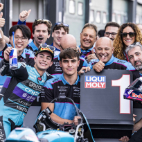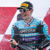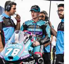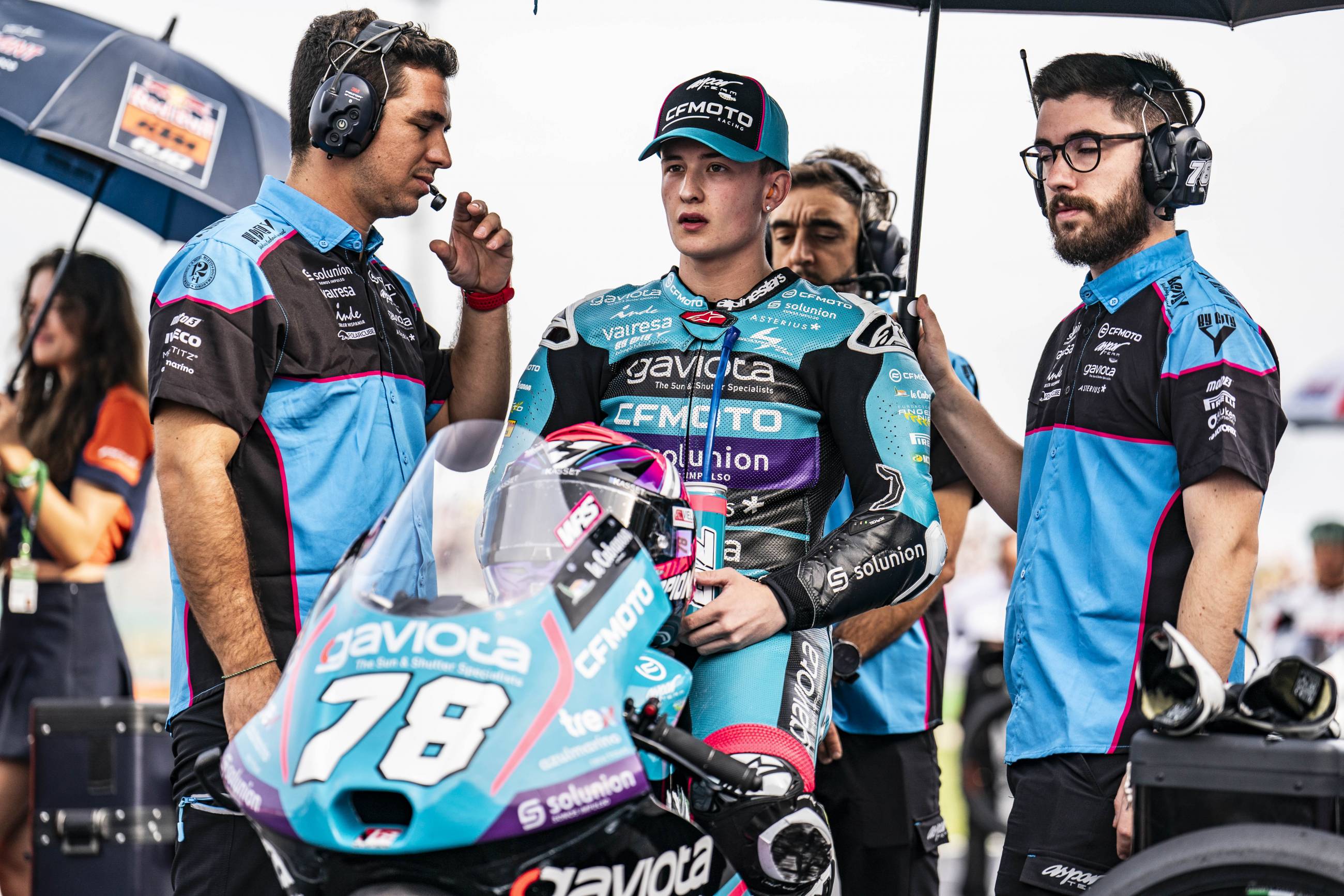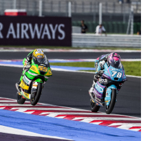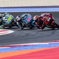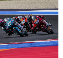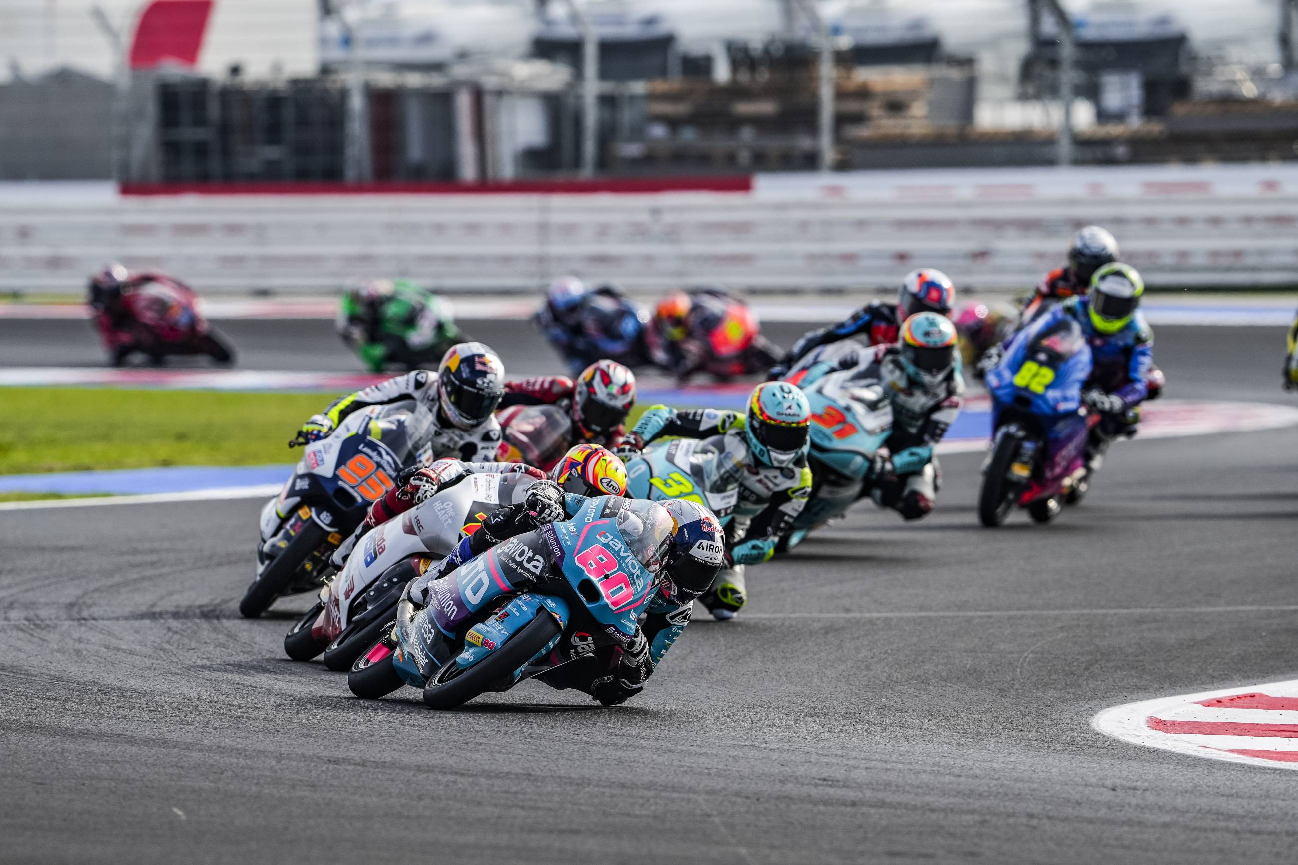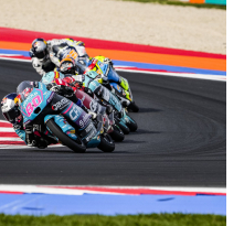 El piloto del CFMOTO Gaviota Aspar Team David Alonso llegó a Misano con el objetivo de resarcirse de la carrera aquí hace dos semanas y así lo ha hecho. Alonso ha ganado el Gran Premio de la Emilia - Romaña tras una última vuelta de infarto. El líder del Mundial ha mantenido la segunda posición en la salida e incluso ha liderado la prueba en los primeros giros. Sin embargo, la batalla por las plazas del podio ha sido un intercambio constante de posiciones entre un grupo muy numeroso de pilotos, lo que ha hecho que Alonso haya llegado a rodar en quinta posición. A falta de once vueltas para el final, Alonso ha superado a Dani Holgado para ponerse al frente. Desde ese momento, el colombiano ha impuesto su ritmo para tratar de romper el grupo y así lo ha conseguido, aunque le han seguido otros tres pilotos: Dani Holgado, Ángel Piqueras y Collin Veijer. Pese a que las distancias entre estos cuatro pilotos han sido mínimas, las posiciones se han mantenido estables hasta la penúltima vuelta, cuando Holgado y Piqueras han superado a Alonso. Sin embargo, Alonso aún no había dicho su última palabra. En la última vuelta, ha completado un doble adelantamiento magistral para recuperar la primera posición y lograr así la victoria. Piqueras ha terminado segundo y, tras él, Holgado había cruzado la línea de meta tercero, pero ha excedido los límites de la pista en la última vuelta y le han sancionado con una posición, por lo que ha sido Veijer quien ha subido al tercer escalón del podio.