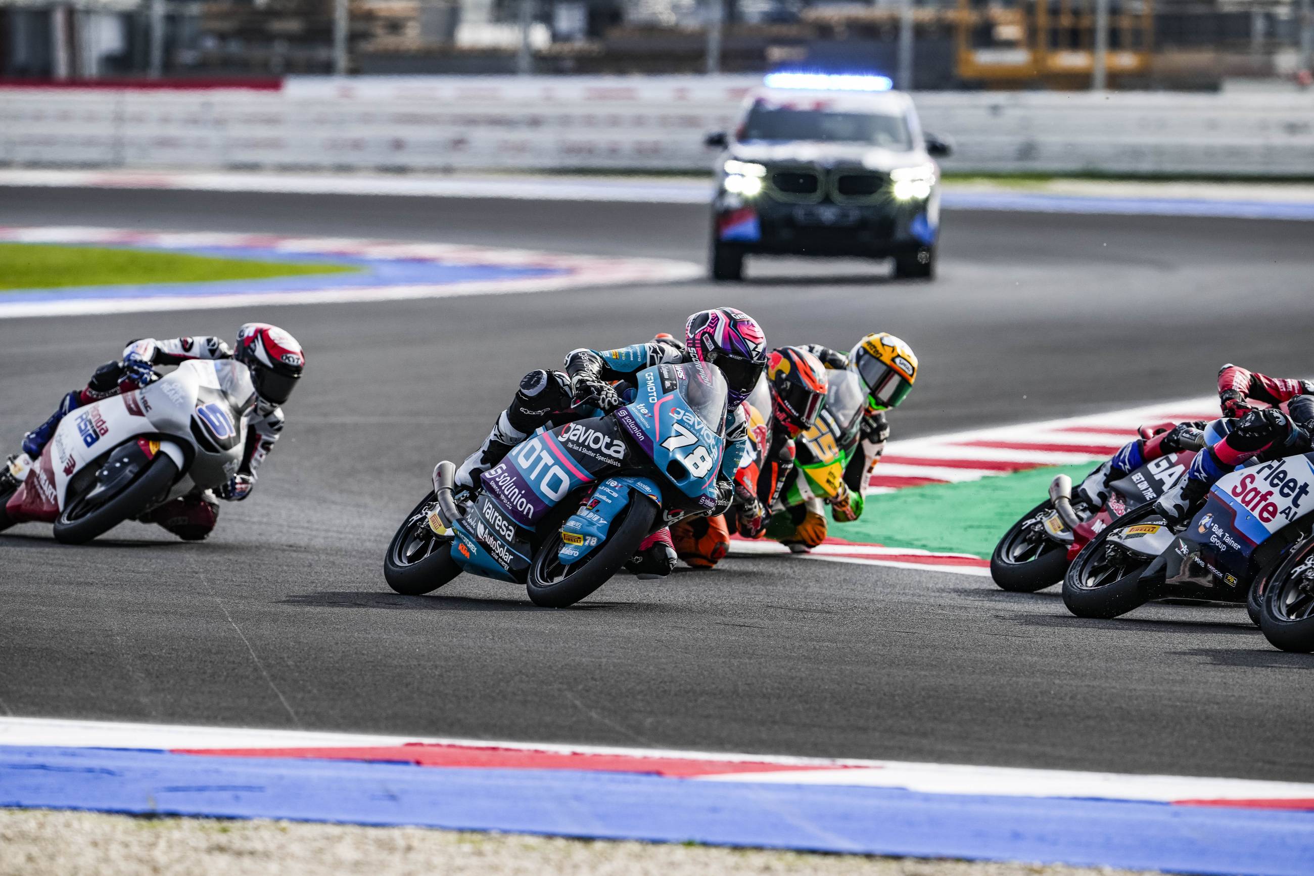 En Misano, Alonso ha conseguido su octava victoria en catorce carreras, un triunfo con el que ha aumentado su ventaja al frente del Mundial hasta los 82 puntos sobre Holgado y Veijer, que están empatados. Iván Ortolá, que ha terminado quinto, ocupa ahora la cuarta posición, a 87 puntos del piloto del CFMOTO Gaviota Aspar Team.