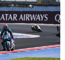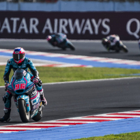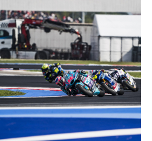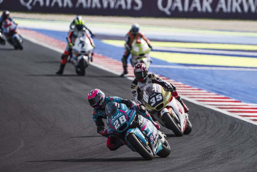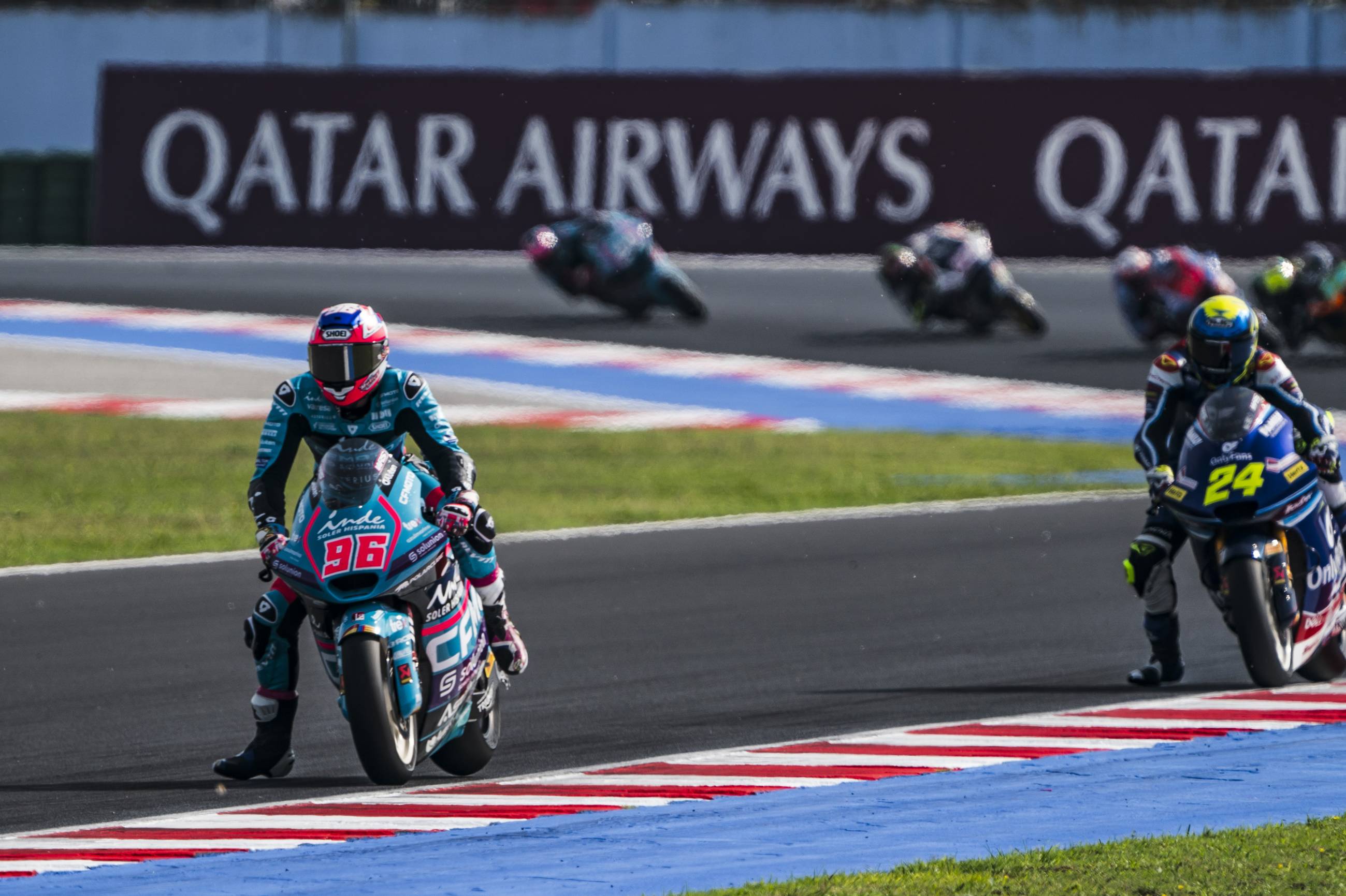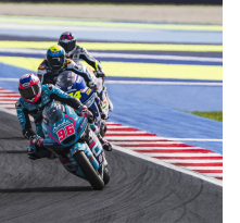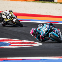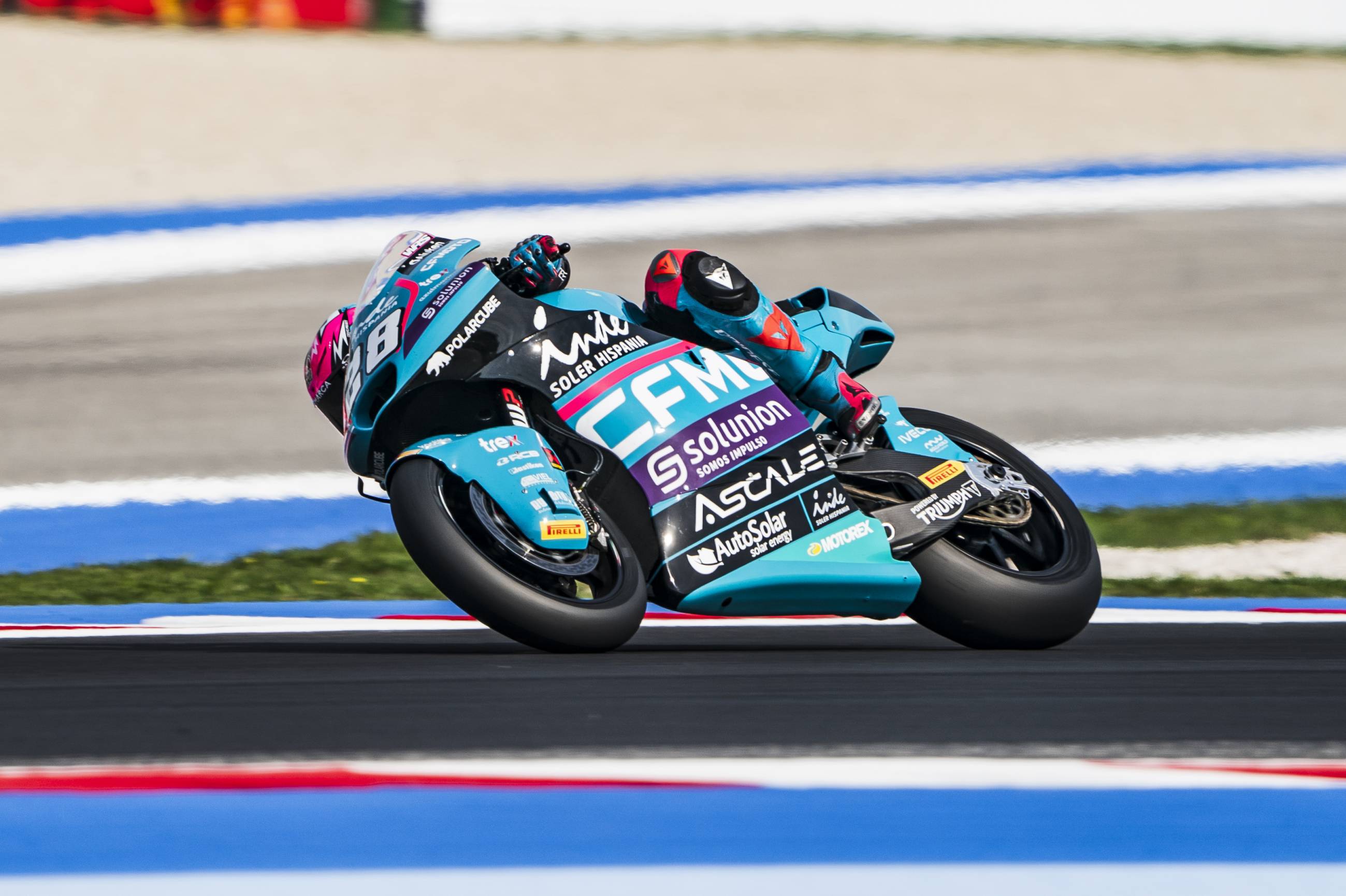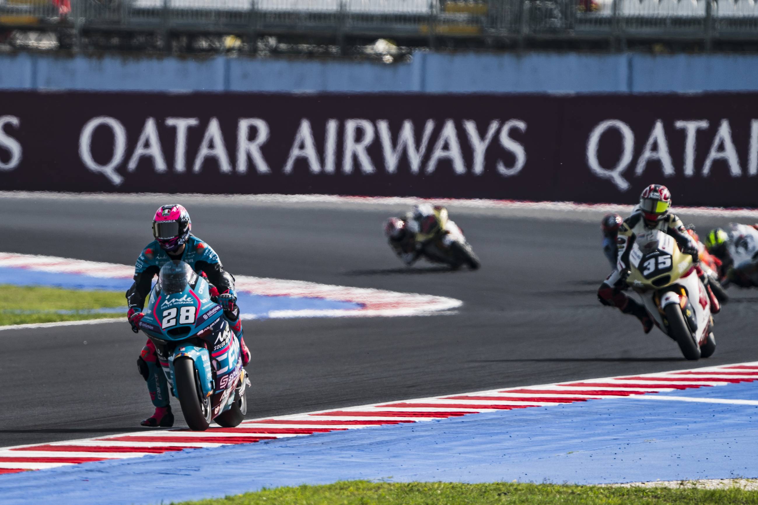 Celestino Vietti, Aron Canet y Tony Arbolino han sido los claros protagonistas de la carrera del Gran Premio de la Emilia – Romaña. Los tres pilotos han estado un paso por delante del resto en la carrera en el Misano World Circuit - Marco Simoncelli y se han repartido las tres posiciones de podio tras una dura pelea. Arbolino, que partía desde la tercera posición, ha cogido la cabeza de carrera en la primera vuelta y ha sido quien ha liderado gran parte de la prueba, con Canet y Vietti siguiéndole de cerca. A seis vueltas para el final, Canet y Vietti han mostrado sus cartas y ha comenzado el intercambio de posiciones entre los tres pilotos de cabeza. En el último giro, Arbolino ha tenido un problema con el cambio de marchas de su moto que le ha privado de luchar por la victoria hasta el final. Canet y Vietti han batallado hasta la línea de meta y ha sido el italiano quien ha logrado la victoria, con solo 29 milésimas sobre el valenciano. El líder del Mundial Ai Ogura ha terminado en cuarta posición, a casi tres segundos de la cabeza. Con esta cuarta plaza, el japonés ha aumentado su ventaja al frente del Mundial hasta los 22 puntos sobre su compañero de equipo Sergio García, quien ha sufrido una caída.