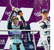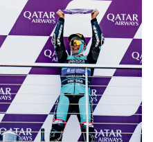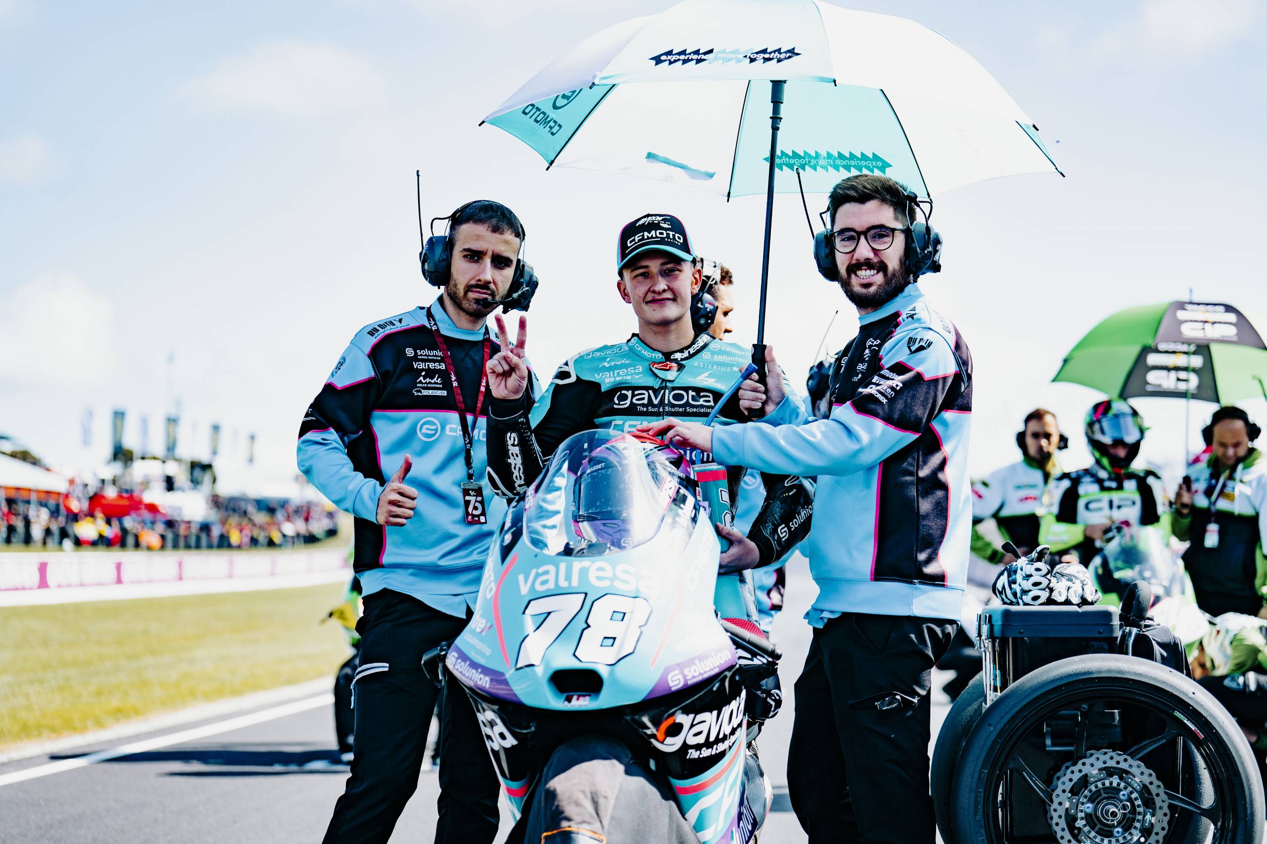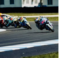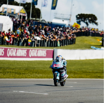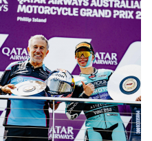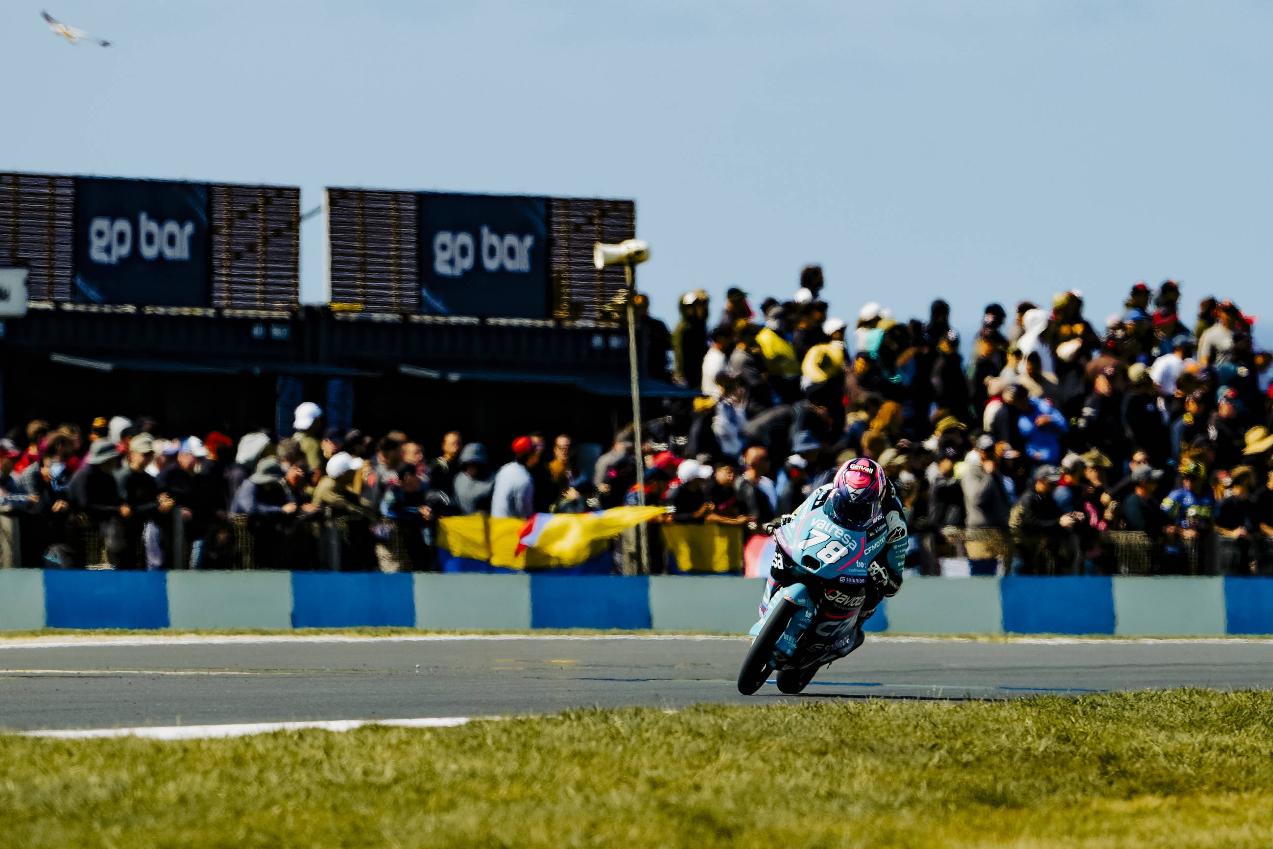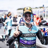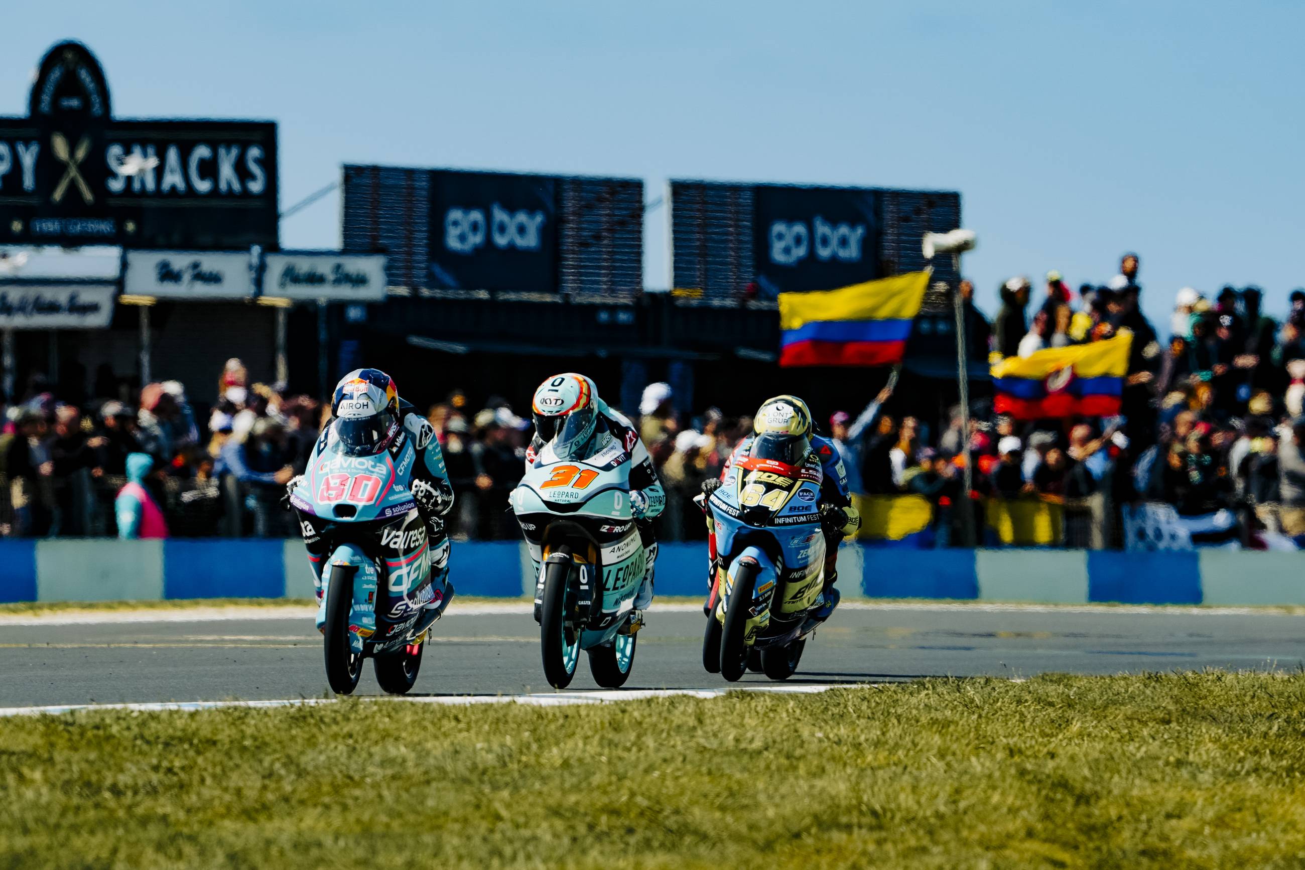 El piloto del CFMOTO Gaviota Aspar Team David Alonso sigue intratable en Moto3 y con su victoria en el Gran Premio de Australia ha igualado el récord de triunfos en la categoría pequeña de Valentino Rossi. El campeón del mundo ha protagonizado un gran remontada en Phillip Island y ha logrado su cuarta victoria consecutiva. Alonso partía desde la décima posición, pero eso no ha sido un problema para él. El piloto del CFMOTO Gaviota Aspar Team ha arrancado muy fuerte y en tan solo dos giros ya ocupaba la cuarta plaza. A partir de ese momento, el campeón del mundo ha permanecido siempre en las posiciones delanteras dentro de un primer grupo que ha estado formado por hasta trece pilotos. Durante toda la carrera, este grupo ha lidiado una intensa batalla, con un intercambio constante de posiciones. Sin embargo, Alonso se guardaba un as bajo la manga. A falta de cinco vueltas para el final, el colombiano ha adelantado a Adrián Fernández para ponerse primero, una posición que ya no ha abandonado hasta la bandera a cuadros. El piloto del CFMOTO Gaviota Aspar Team ha ido poco a poco abriendo hueco al frente y ha cruzado la línea de meta con casi tres segundos de ventaja sobre Dani Holgado y Adrián Fernández, que han completado el podio. El campeón del mundo ha celebrado su undécima victoria del año con una venda en la cabeza, emulando la celebración que hizo Rossi cuando estableció el récord de más victorias en la categoría pequeña en una temporada en el Gran Premio de Indonesia de 1997, una carrera en la que compartió podio con Jorge Martínez 'Aspar'.