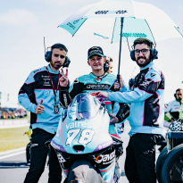 VICTORIA David Alonso: "Veía difícil ganar hoy. Este fin de semana me ha costado mucho mantener la concentración y la intensidad. Después de ganar el Mundial, te relajas y dejas de cuidar los detalles. Esto me pasó factura ayer en la clasificación. Además, fue la primera vez que no trabajé el plan de carrera en la tarde del sábado y quiero pedir perdón al equipo por ello. Hoy me he levantado en modo carrera, muy concentrado. Me he ido encontrando cada vez mejor. Esta celebración es para recordar a Valentino, porque cuando consiguió su undécima victoria en 125cc lo festejó así y como hoy le he igualado, quería celebrarlo como él lo hizo".