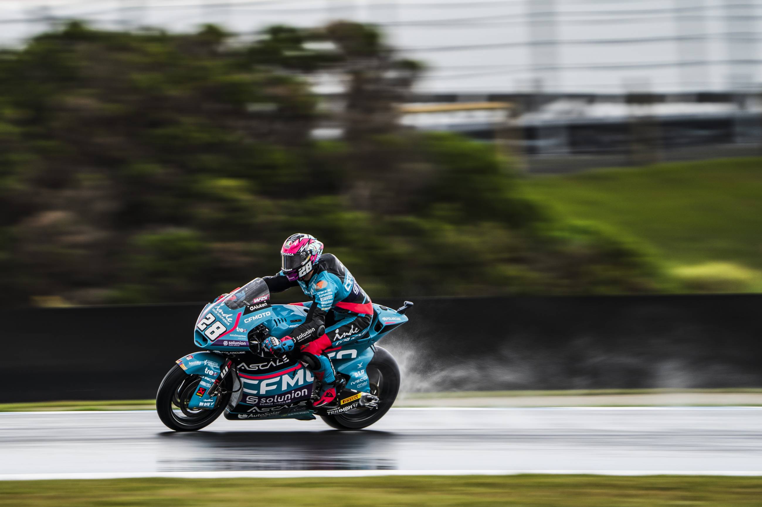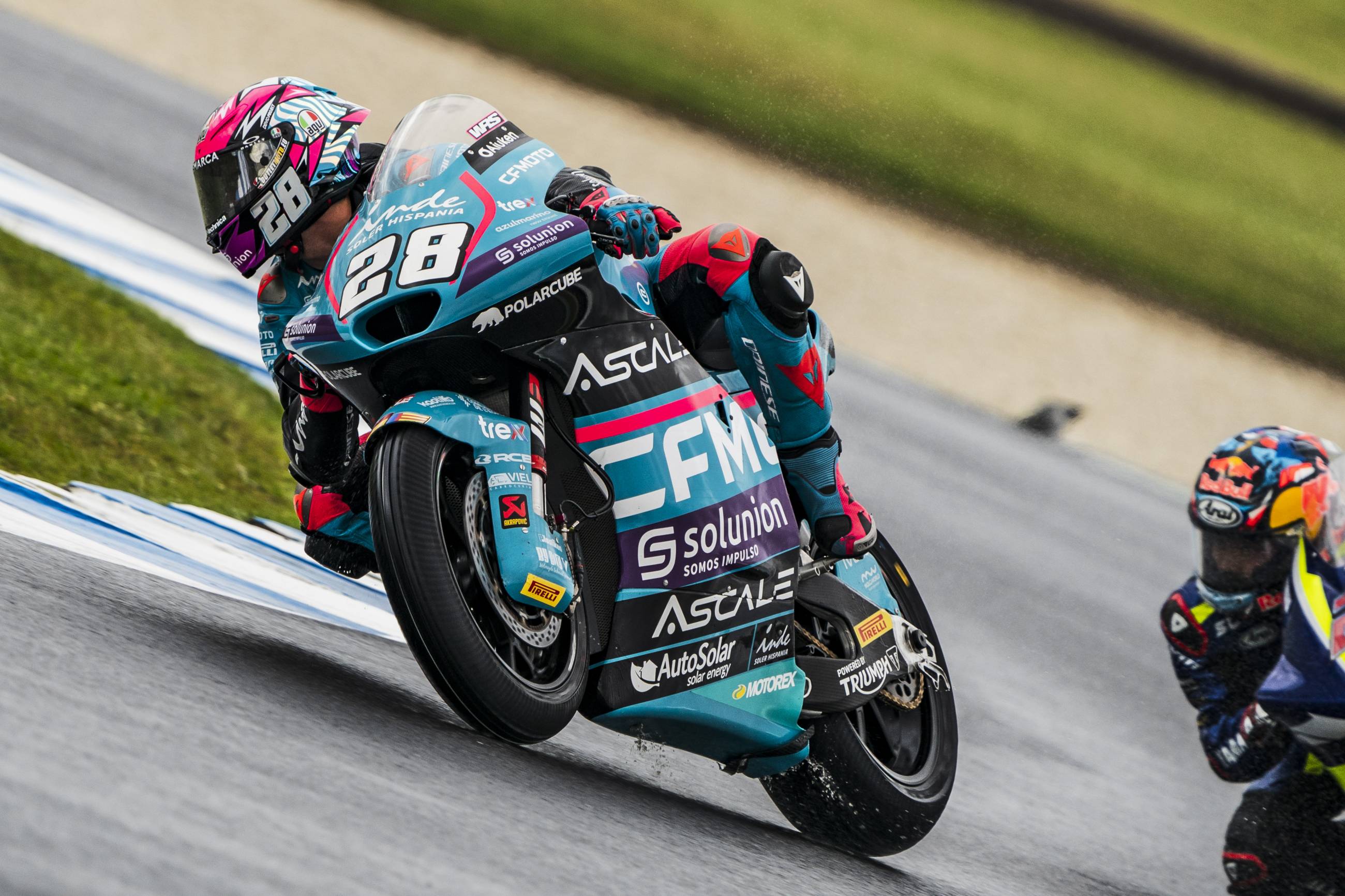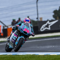 La meteorología ha sido la clara protagonista de la primera jornada del Gran Premio de Australia de Moto2, una primera jornada en la que el murciano Fermín Aldeguer ha sido el piloto más rápido. El primer entrenamiento de la categoría intermedia ha aumentado en 15 minutos su duración habitual con el objetivo de que los pilotos pudieran probar los neumáticos de seco sobre el nuevo asfalto de Phillip Island en tandas largas. Sin embargo, la lluvia ha truncado los planes y los pilotos tan solo han podido rodar con compuestos de mojado. En estas condiciones, Aron Canet ha marcado la referencia al parar el crono en 1:41.620. Tras él han terminado Mario Aji y Alonso López. La segunda sesión también ha empezado con la pista mojada, pero conforme han transcurrido los minutos el asfalto se ha ido secando, lo que ha permitido montar neumáticos de seco al final del entrenamiento y mejorar los tiempos de forma notable. El más rápido ha sido Aldeguer, que ha conseguido un tiempo de 1:32.718, con el que ha aventajado en dos décimas a Canet y en tres a López. Para encontrar al líder del Mundial, Ai Ogura, hay que bajar hasta la decimotercera posición, mientras que su máximo rival Sergio García ha terminado en séptima plaza.