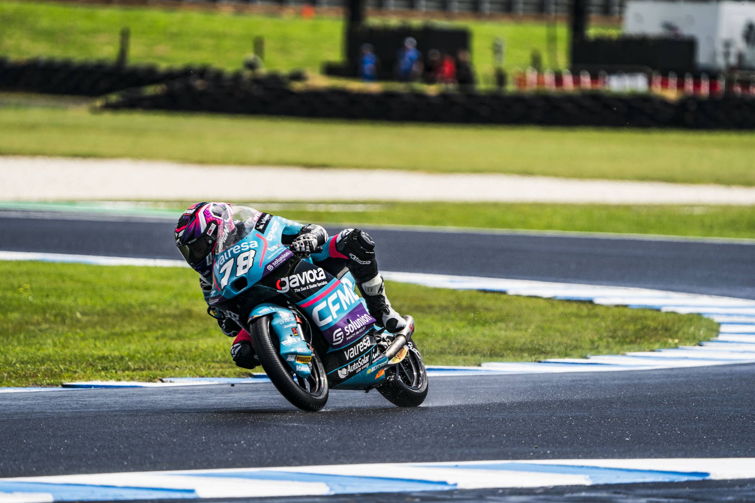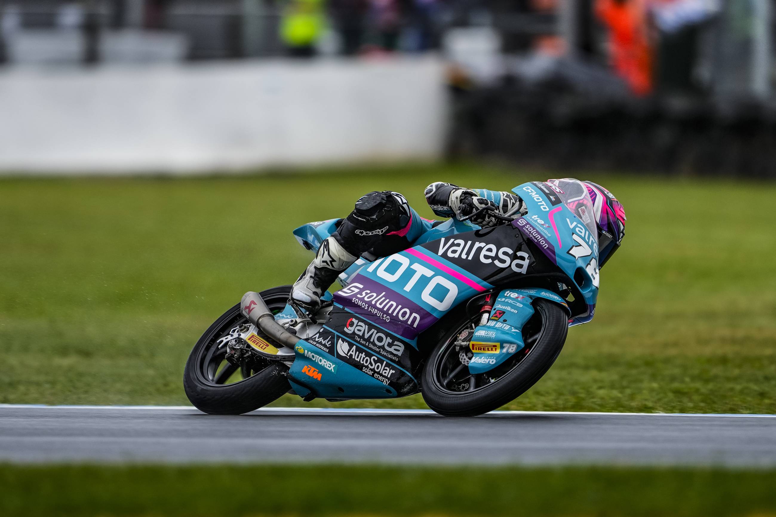 El CFMOTO Gaviota Aspar Team deberá luchar por remontar mañana en la carrera del Gran Premio de Australia después de una clasificación complicada en Phillip Island. La meteorología ha vuelto a marcar la jornada: por la mañana, los pilotos de la categoría pequeña han rodado de nuevo con la pista mojada, mientras que a la hora de la clasificación se han encontrado por fin con la pista seca, aunque el viento ha complicado las condiciones. En la última sesión de entrenamiento antes del cronometrado, Alonso ha vuelto a ser competitivo en mojado y ha conseguido el pase directo a la Q2 tras acabar con el segundo mejor crono, pese haber sufrido una caída. El campeón del mundo no ha querido perder el tiempo en la clasificación y nada más se ha puesto el semáforo en verde ha salido a pista para acumular kilómetros en seco y en solitario. En su primera salida, Alonso tan solo ha marcado el decimoquinto mejor registro tras parar el crono en 1:37.800. El piloto del CFMOTO Gaviota Aspar Team ha sido capaz de mejorar su tiempo en su segunda salida hasta el 1:36.602, pero ese crono solo le ha valido para obtener la décima posición de parrilla. El colombiano ha sufrido en condiciones de seco, especialmente para parar la moto, pero confía en poder progresar mañana y pelear así para sumar su undécima victoria de la temporada. La pole la ha conseguido Iván Ortolá, que saldrá desde la primera posición por tercer gran premio consecutivo después de marcar un tiempo de 1:35.872. El valenciano ha aventajado en 124 milésimas al neerlandés Collin Veijer, que saldrá segundo, y en 151 al madrileño Adrián Fernández, que completará la primera fila.