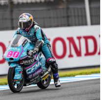 Su compañero de equipo Joel Esteban se ha estrenado hoy en el circuito de Motegi. El piloto del CFMOTO Gaviota Aspar Team se ha adaptado rápidamente al trazado nipón y en el primer entrenamiento ha marcado el undécimo mejor registro. En la sesión vespertina, el catalán ha continuado aprendiendo y, aunque ha mejorado su tiempo de la mañana tres segundos, tan solo ha podido terminar en vigésima posición. Esteban deberá pelear mañana para dar un paso al frente que le permita entrar en la Q2 y poder luchar por una buena posición de parrilla.