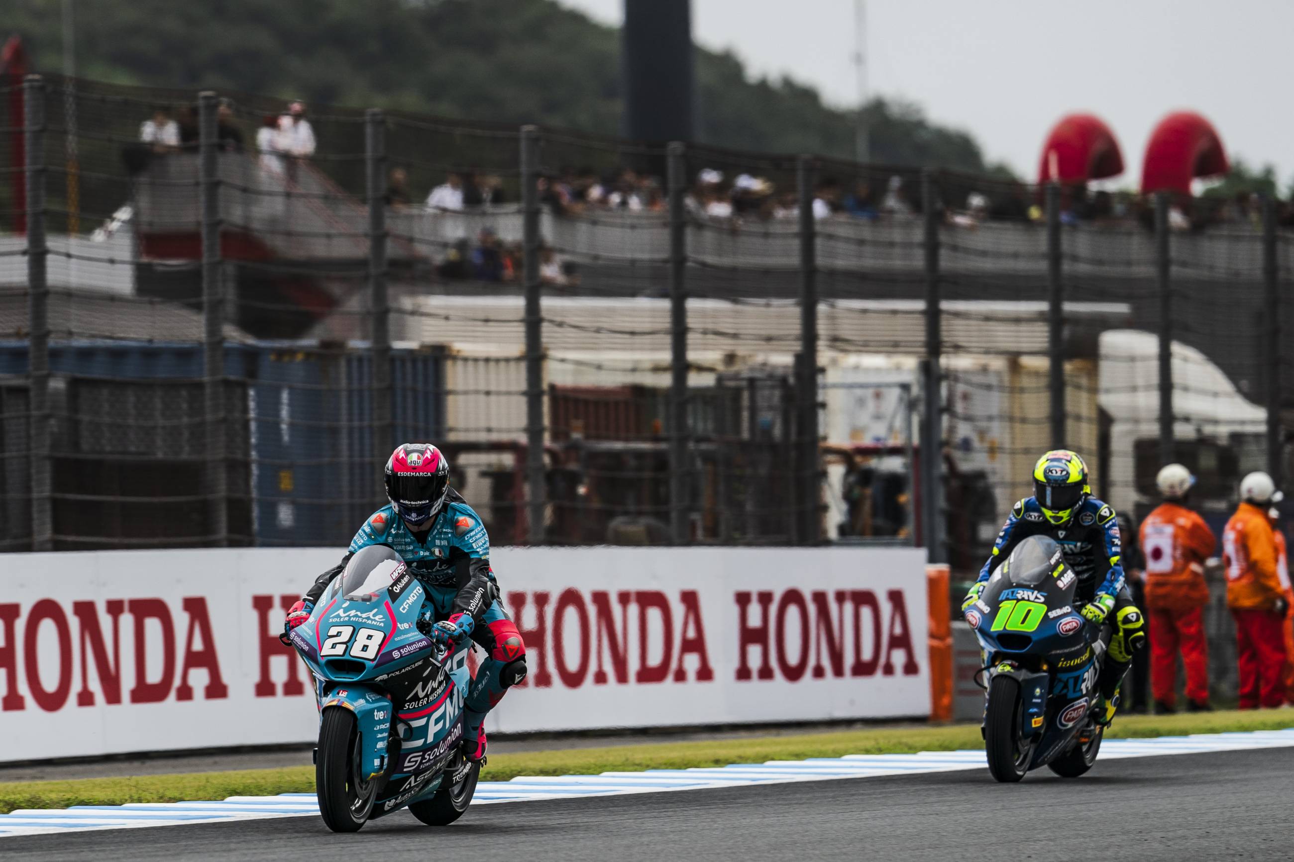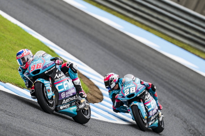 El CFMOTO Inde Aspar Team ha terminado el Gran Premio de Japón con sus dos pilotos en los puntos. Izan Guevara ha completado uno de sus mejores fines de semana en Moto2, pese a que solo ha podido acabar en décima posición. El mallorquín ha sido muy competitivo desde el primer entrenamiento, consiguió el pase directo a la Q2 y logró su mejor resultado de parrilla al marcar el quinto mejor crono. En la carrera, Guevara ha protagonizado una gran salida que le ha llevado a colocarse en segunda posición. El piloto del CFMOTO Inde Aspar Team ha salido con neumáticos de mojado, por lo que, a medida que ha avanzado la carrera y la pista se ha ido secando, ha ido perdiendo posiciones hasta cruzar la línea de meta en décima plaza. Su compañero de equipo Jake Dixon, que partía desde la pole, ha mantenido la primera posición en los primeros giros y ha tratado de abrir hueco. Sin embargo, al igual que Guevara, Dixon ha optado por compuestos de mojado, lo que ha condenado sus opciones. Finalmente, ha terminado en decimotercera plaza. El CFMOTO Inde Aspar Team ya tiene la mente puesta en el Gran Premio de Australia, dentro de dos semanas.