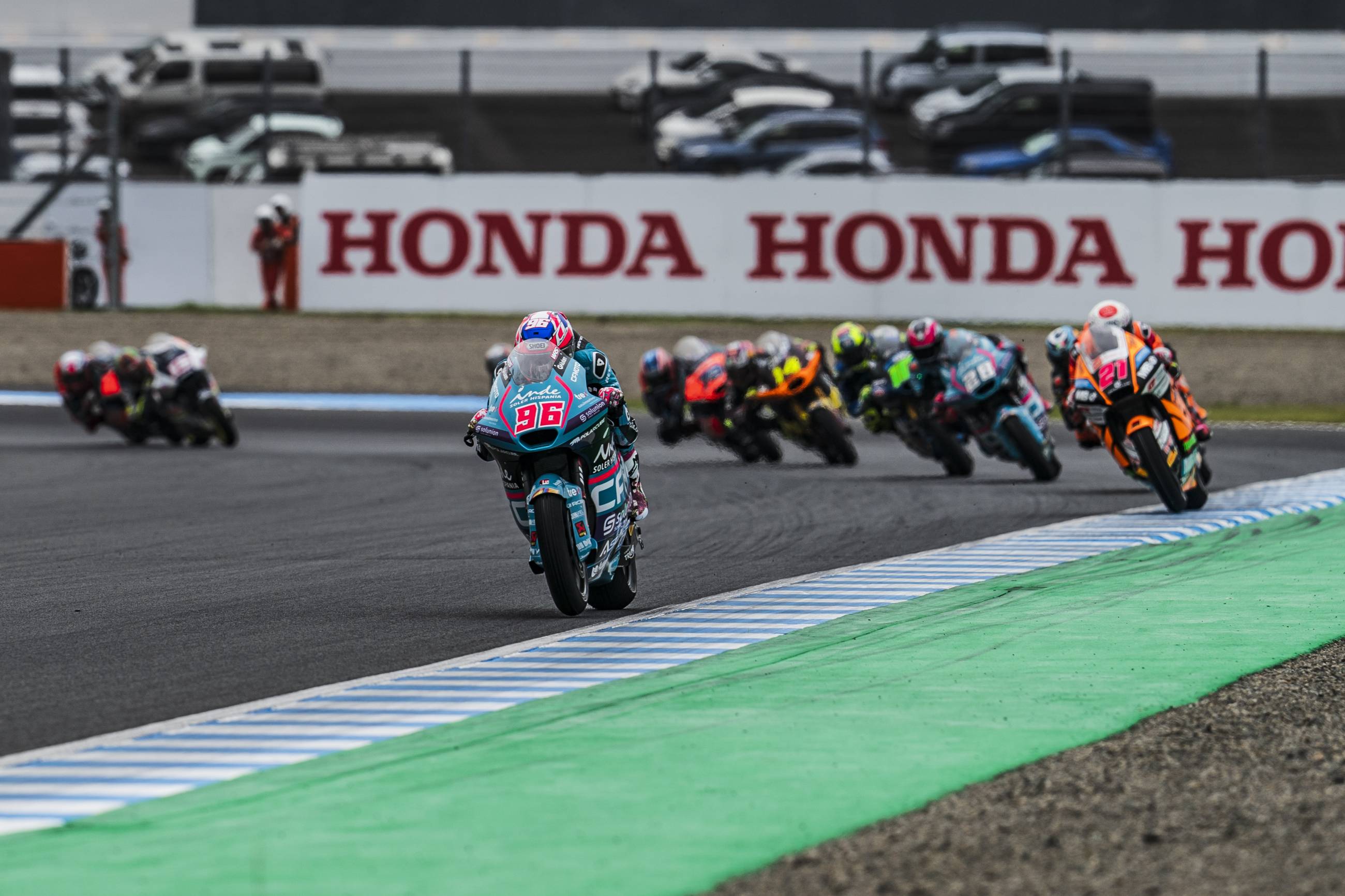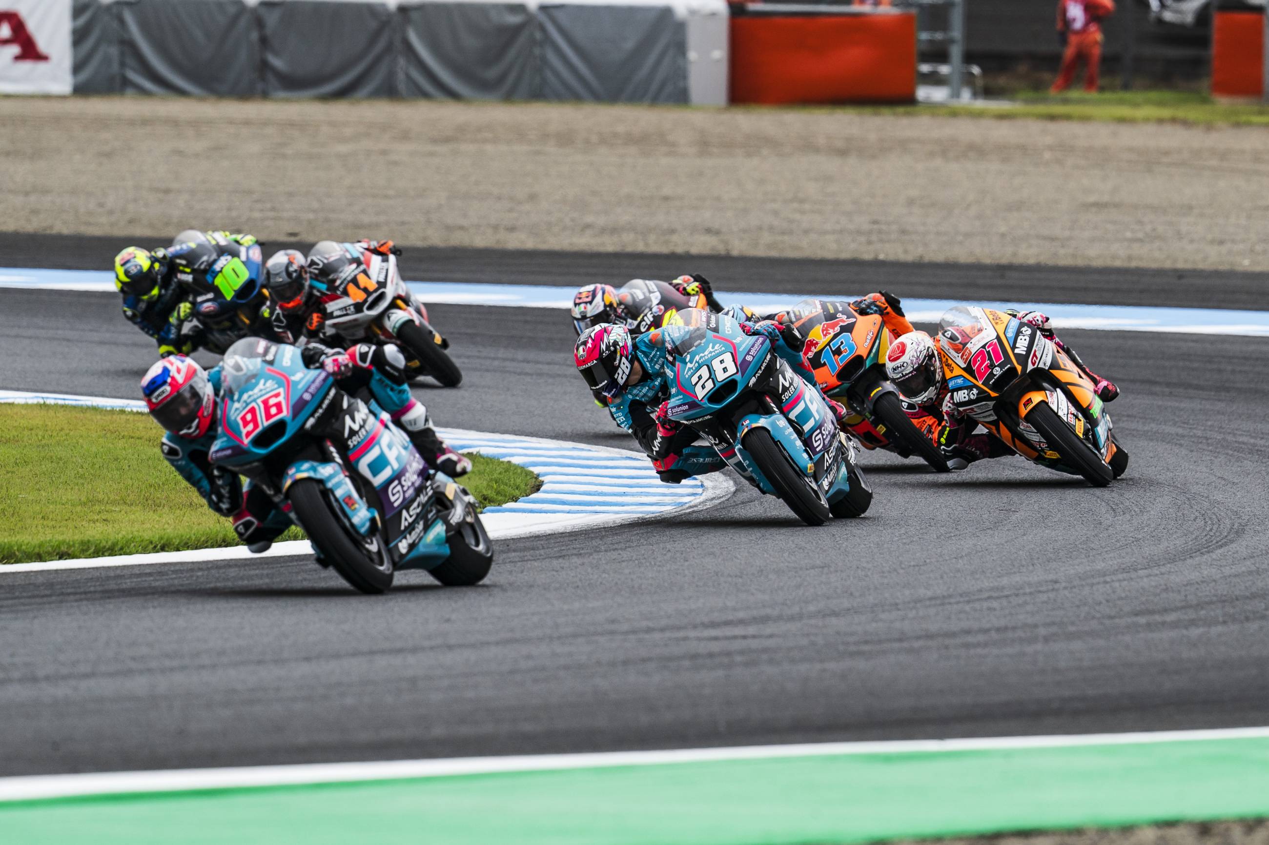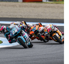 El caos provocado por la lluvia ha reinado en la carrera del Gran Premio de Japón de Moto2. Cuando se ha apagado el semáforo, la pista estaba completamente seca y apenas caían unas gotas de lluvia. Las condiciones han cambiado poco después, cuando ha empezado se ha intensificado la lluvia en Motegi. Este cambio de condiciones ha hecho que Dirección de Carrera haya detenido la prueba en la primera vuelta, pues todos los pilotos habían salido con compuestos de seco. Sin embargo, cuando se ha reanudado la carrera, ya no llovía y la pista no estaba completamente mojada. Eso ha hecho que varios pilotos hayan decidido apostar por neumáticos de seco, una apuesta que ha resultado ser la ganadora. El líder del Mundial Ai Ogura ha sido uno de los pilotos que han montado compuestos de seco y, pese a salir desde la novena posición, en la cuarta vuelta ya ocupaba la primera plaza. Ogura ha liderado gran parte de la prueba, pero no ha podido con Manu González. El madrileño, que partía decimocuarto, ha ido poco a poco recuperando posiciones hasta que, a falta de cuatro vueltas para el final, ha superado a Ogura para conseguir su primer triunfo en Moto2. Ogura ha terminado segundo y Filip Salac, que ya demostró el viernes que era muy fuerte en condiciones mixtas, ha cruzado la línea de meta en tercera posición. Con la segunda plaza de Ogura, el japonés ha ampliado su ventaja al frente del Mundial hasta los 60 puntos y en el Gran Premio de Australia tendrá su primera oportunidad para cerrar matemáticamente el título de Moto2.