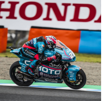 La meteorología ha sido la protagonista del arranque del Gran Premio de Japón. Los pilotos de Moto2 han comenzado las dos sesiones de entrenamiento con la pista seca, pero en ambas ha empezado a chispear, lo que ha condicionado sus planes de trabajo. En condiciones mixtas, pues el asfalto no ha llegado a estar completamente mojado, el piloto más rápido ha sido Filip Salac, que ha liderado los dos entrenamientos. El checo se ha mostrado muy fuerte durante toda la jornada y ha establecido un nuevo récord de la pista tras parar el crono en 1:49.716. Salac ha batido así por 182 milésimas el anterior récord, en manos de Somkiat Chantra desde la pasada temporada. Segundo ha terminado el ganador de la última carrera, Aron Canet, que se ha quedado a 46 milésimas del tiempo de Salac, y Marcos Ramírez ha sido tercero, a 95 milésimas. En cuanto a los líderes de la categoría, Ai Ogura, que este fin de semana disputa su gran premio de casa, ha terminado cuarto, mientras que su máximo rival, Sergio García, solo ha podido ser decimoséptimo.