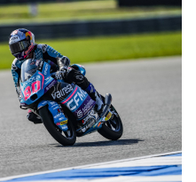 Moto3 no para y menos de una semana después de la última carrera, los pilotos de la categoría pequeña han vuelto a la acción con el Gran Premio de Tailandia, un gran premio que ha arrancado con el piloto del CFMOTO Gaviota Aspar Team David Alonso en primera posición. Alonso sigue marcando el ritmo y en la primera jornada de entrenamientos en Buriram ha demostrado una vez más que está un paso por delante del resto. En la sesión matinal, al campeón del mundo tan solo le han hecho falta diez minutos para establecer un nuevo récord de la pista al parar el crono en 1:41.844, un registro que ha sido capaz de rebajar hasta el 1:40.544 en ese mismo entrenamiento. Con este crono, Alonso ha batido por 1.3 segundos el anterior récord del trazado, en manos de Deniz Öncü desde la pasada temporada. Por la tarde, el campeón del mundo ha vuelto a ser el más rápido, aunque no ha mejorado su tiempo de la mañana. El joven colombiano ha completado una vuelta en 1:40:703 y es el único piloto que ha bajado del 1:41 en el primer día en Tailandia. Segundo ha terminado Joel Kelso, que se ha quedado a tres décimas del tiempo de Alonso, y tercero Adrián Fernández, a cuatro décimas. Todo ello en una jornada en la que el piloto del CFMOTO Gaviota Aspar Team se ha ido al suelo en dos ocasiones.