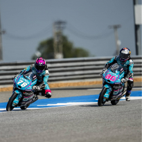 Su compañero de equipo Joel Esteban sigue acumulando experiencia en Moto3 y este fin de semana se enfrenta por cuarto gran premio consecutivo a un circuito desconocido para él. En Buriram, el joven debutante ha empezado con buen pie y ha marcado el decimotercer mejor tiempo en la primera sesión. Esteban ha sido capaz de mejorar más de dos décimas de una sesión a otra y recortar su diferencia con el primero de 1.3 segundos a nueve décimas. Pese a su progreso, el catalán solo ha podido terminar decimoctavo y mañana deberá mejorar para poder entrar directamente en la Q2.
