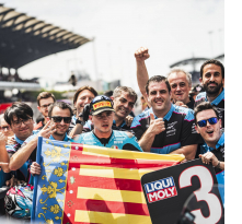 El piloto del CFMOTO RCB Aspar Team Izan Guevara recordará siempre el Gran Premio de Malasia de 2024. El mallorquín ha conseguido el primer podio de su trayectoria en Moto2 después de 37 carreras en la categoría intermedia. Guevara, que salía desde la undécima posición, ha completado una gran salida y tras el primer giro ya era quinto. Se ha mantenido toda la carrera en el grupo perseguidor y ha luchado hasta el final para conseguir subir al cajón. A falta de tres vueltas, ha escalado hasta la cuarta posición y, en el último giro, ha superado a su compañero de equipo Jake Dixon para lograrlo. El británico ha protagonizado una gran remontada en Sepang, pero no ha podido completarla de la mejor manera. Dixon partía desde la duodécima posición de parrilla y conforme han ido transcurriendo las vueltas ha ido adelantando a sus rivales hasta que, cuando quedaban seis giros, ha llegado a la tercera posición. Al piloto del CFMOTO RCB Aspar Team tan solo le quedaba una vuelta para reencontrarse con el podio, pero ha dejado de acelerar cuando ha cruzado la línea de meta en el penúltimo giro. Como consecuencia, Guevara le ha adelantado y Dixon ha terminado a las puertas del podio.