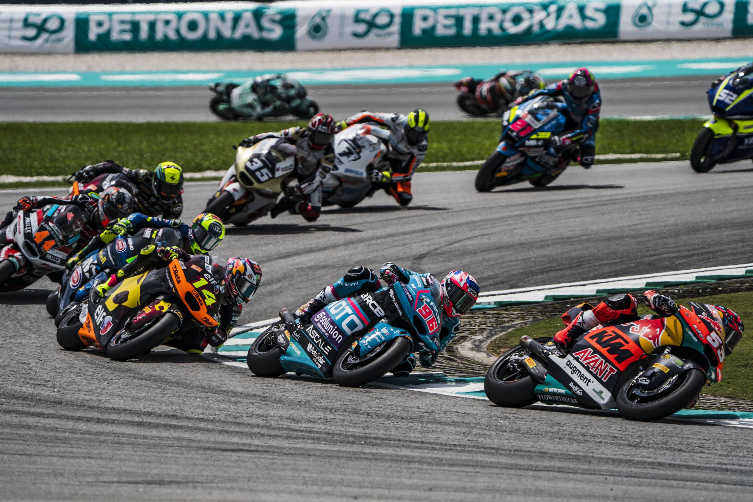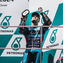 Por delante, Celestino Vietti ha logrado su tercera victoria de la temporada después de liderar todas las vueltas. El italiano partía desde la tercera posición, se ha puesto al frente en la salida y ha mostrado un ritmo muy superior con el que no ha dado opción a sus rivales. Tras él ha acabado el piloto que salía desde la pole, Jorge Navarro, que este fin de semana está sustituyendo al lesionado Joe Roberts. Por su parte, los primeros clasificados de la categoría no han tenido un día sencillo en Sepang: Ai Ogura ha tenido que abandonar tras un problema en su moto, mientras que Aron Canet ha terminado en octava posición, un resultado con el que sella el subcampeonato de Moto2.
