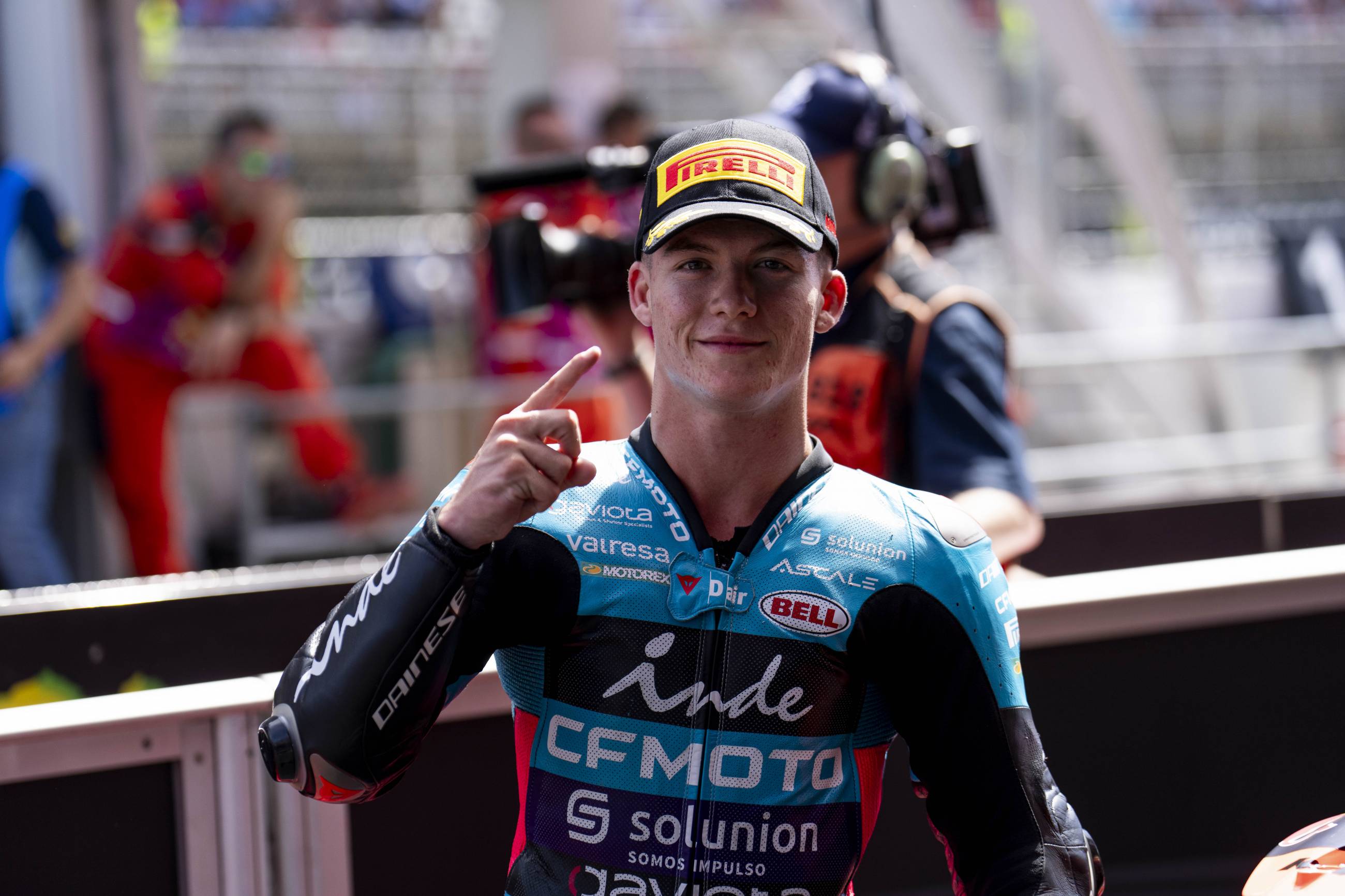 Dani Holgado ha conseguido la primera pole en Moto2 después de completar un sábado impecable. El piloto del CFMOTO Impulse Aspar Team ha marcado el ritmo en esta jornada para batir el récord de la pista y hacerse con la primera posición de la parrilla de salida de mañana. Será la segunda vez que el español comience la carrera desde la pole, aunque en esta ocasión lo ha conseguido de forma oficial ya que anteriormente lo hizo debido a una sanción de Manu González. En esta ocasión Holgado estará acompañado en la primera fila por Jake Dixon, segundo, y por Collin Veijer, tercero. David Alonso se verá obligado a realizar una buena salida para remontar posiciones desde la sexta fila.