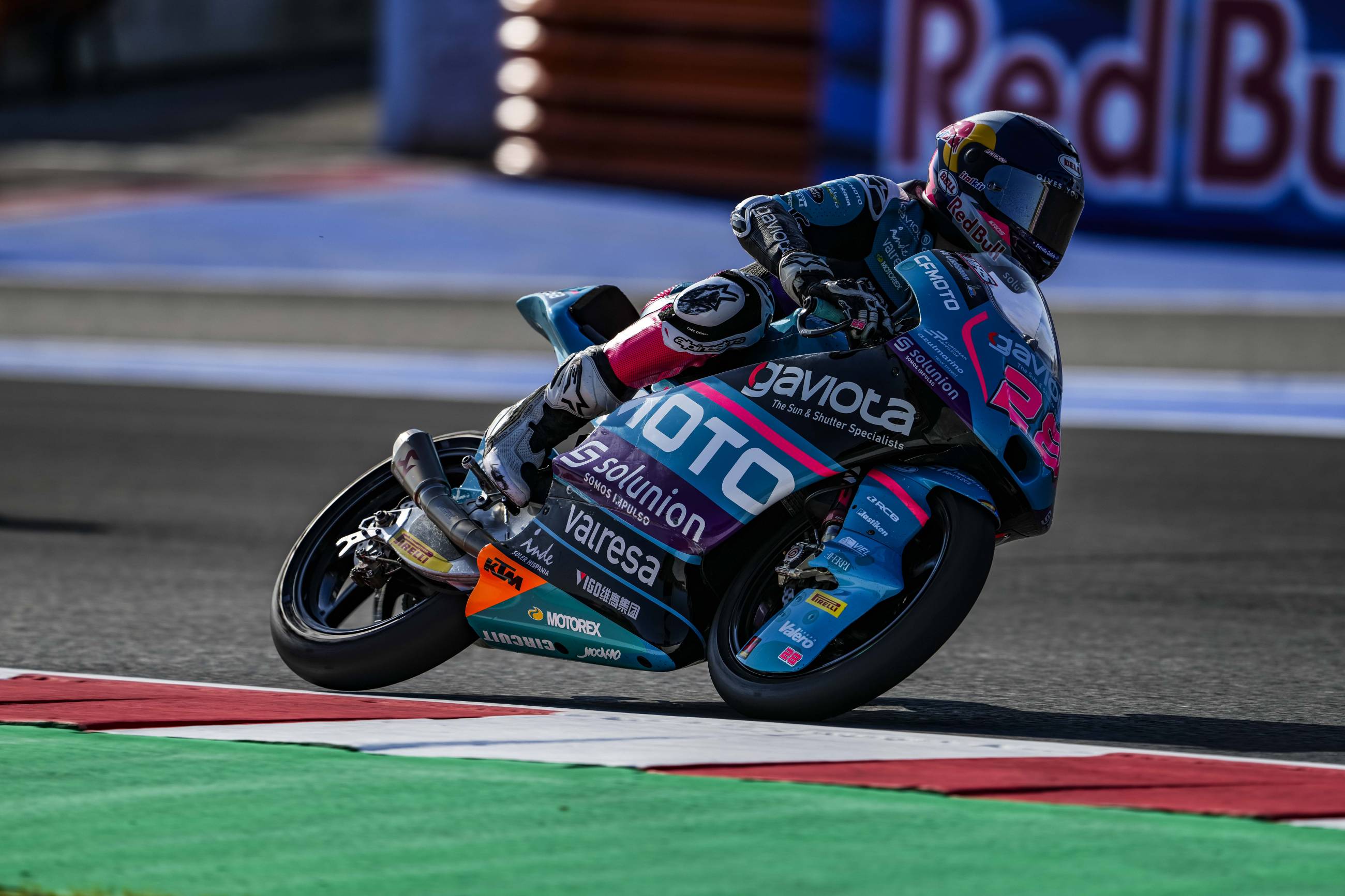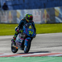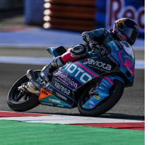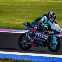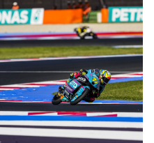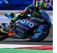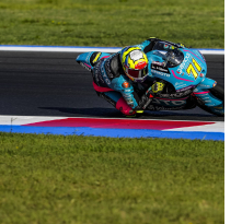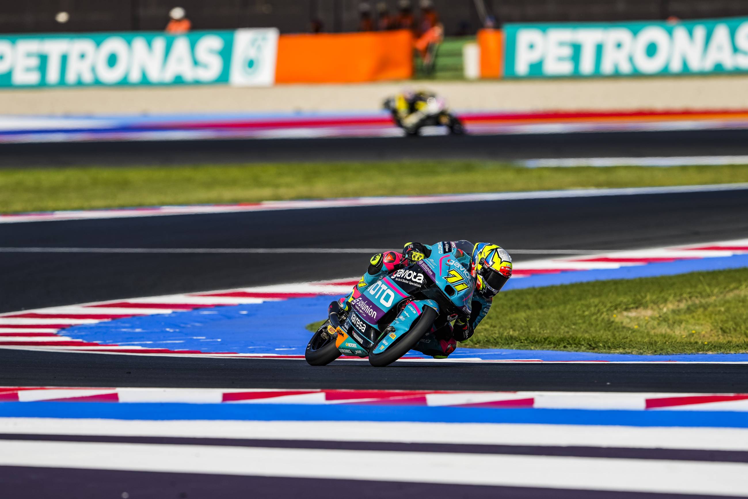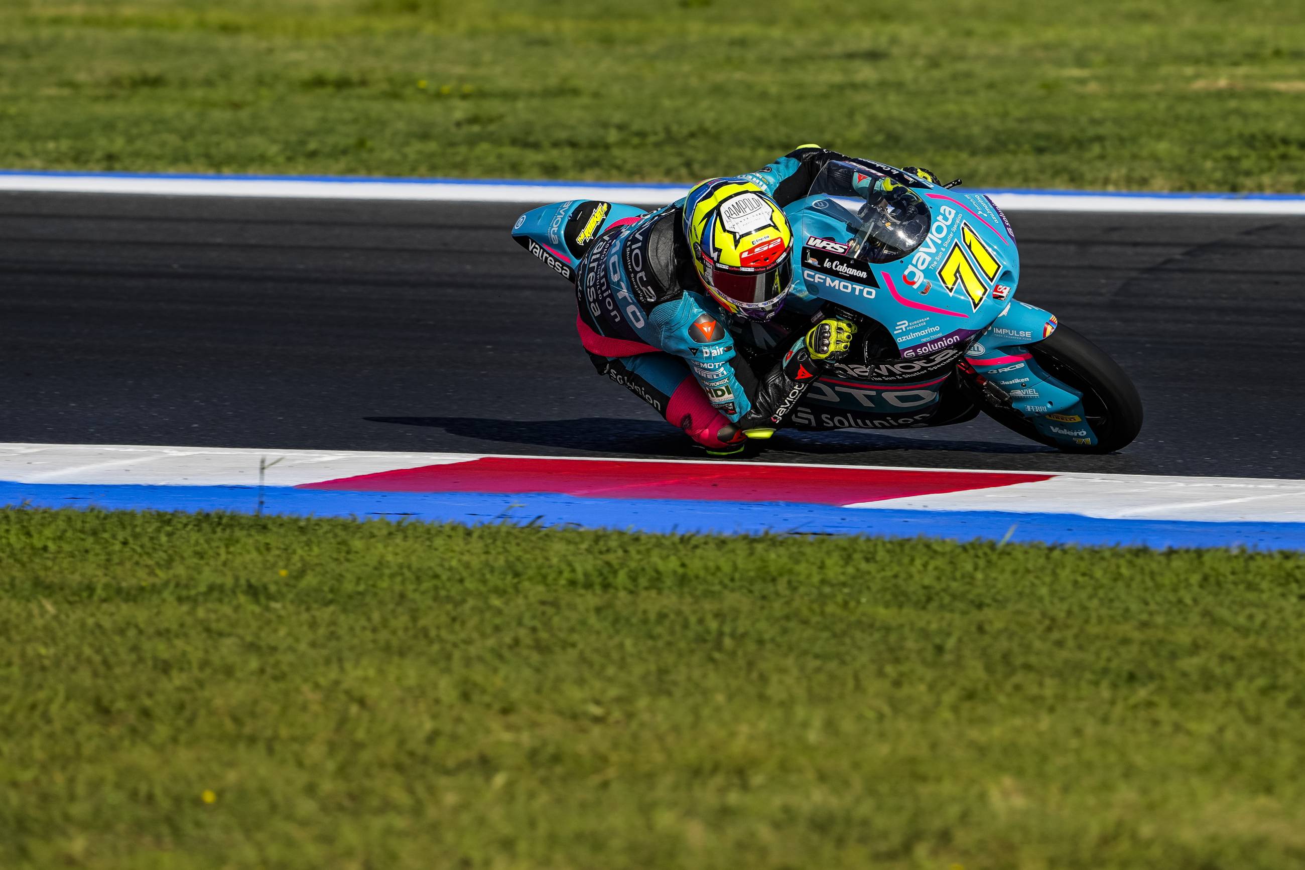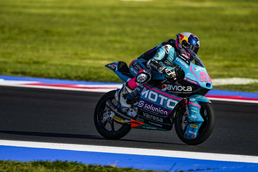 El Misano World Circuit ha acogido este viernes los primeros entrenamientos del Gran Premio de San Marino y los pilotos del CFMOTO Gaviota Aspar Team han podido disfrutar de una productiva jornada de trabajo. Máximo Quiles y Dennis Foggia han disputado el entrenamiento libre de esta mañana centrados en dar lo mejor de si mismos desde la primera salida a pista. El italiano, que compite en su gran premio de casa en esta ocasión, ha mantenido un buen ritmo que le ha permitido finalizar en el top 5 de la clasificación, mientras que su compañero de equipo ha trabajado en mejorar su pilotaje en el trazado italiano. Pese a que Quiles ha quedado algo más retrasado en la clasificación, decimoséptimo, sus sensaciones han sido muy positivas de cara al entrenamiento de la tarde. Ha sido en este momento cuando el español ha dado un paso adelante y ha sido capaz de mejorar sus tiempos en más de un segundo. El piloto del CFMOTO Gaviota Aspar Team se ha mantenido en la parte alta de la clasificación, llegando a ocupar incluso el top 3. Finalmente, su 1:41.272 le ha colocado en sexto lugar, a seis décimas del mejor registro. Por otro lado, Dennis Foggia ha tenido que emplearse a fondo para evitar la Q1 de mañana. El piloto italiano ha tenido alguna dificultad con respecto a la sesión matinal, aunque ha podido solucionarlo rápidamente con el equipo y ha mejorado ligeramente sus marcas para conseguir el tiempo (1:41.701) que le daba acceso directo a la Q2 junto a Quiles.