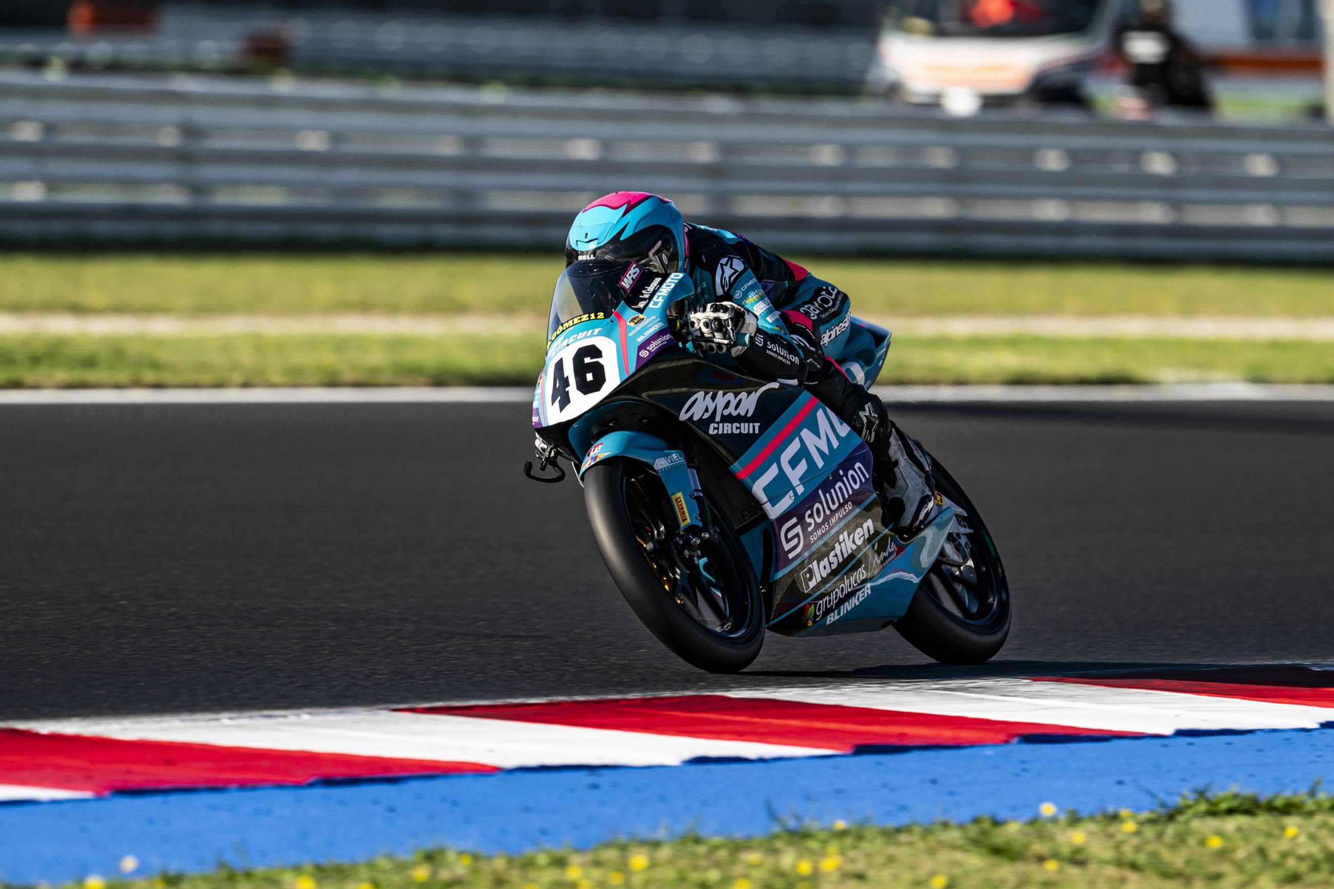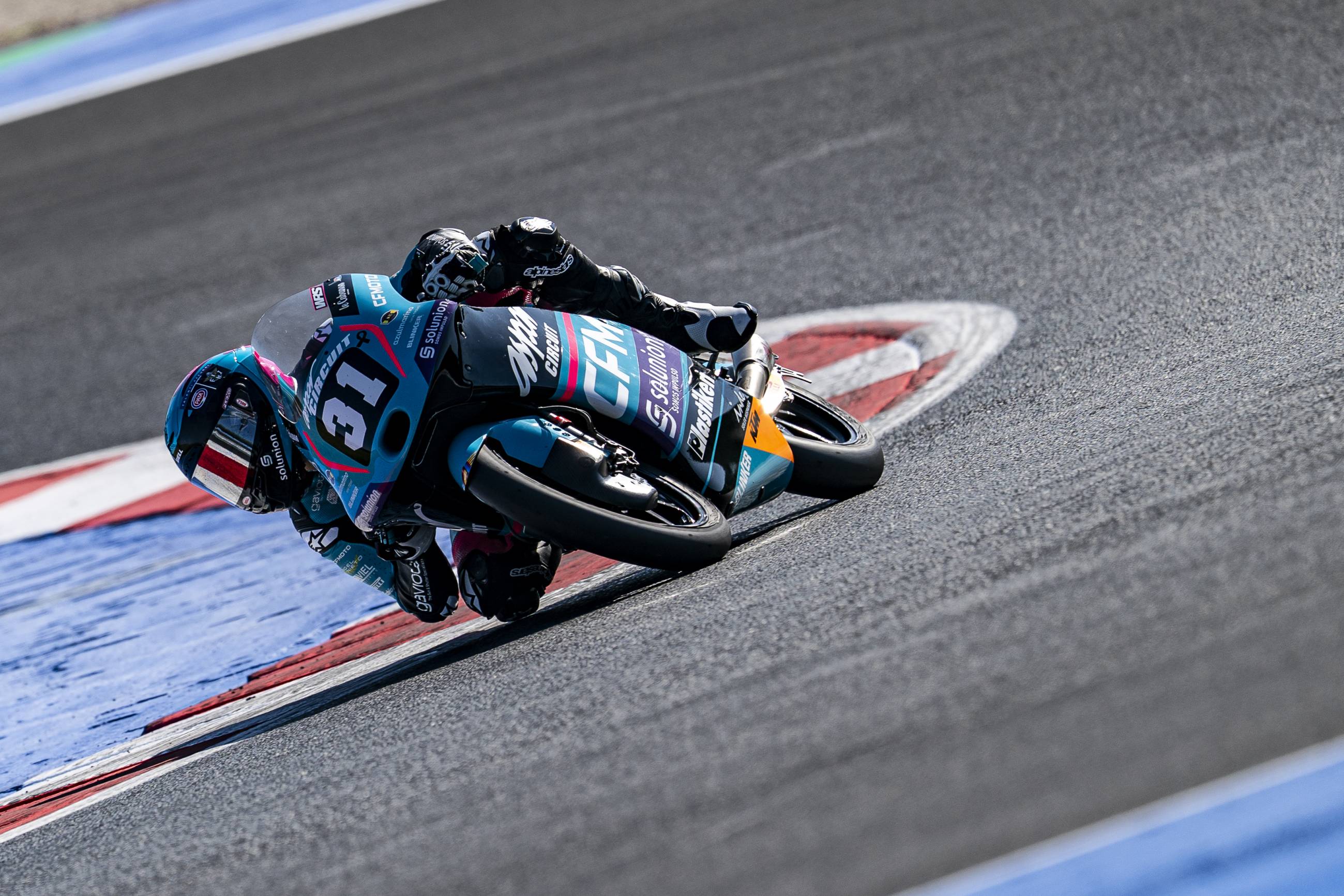 En JuniorGP, Joel Esteban se ha enfrentado a una complicada primera carrera después de recibir una penalización por la que ha tenido que comenzar desde el final de la parrilla de salida, a lo que se ha sumado una bandera roja que ha obligado a reducir la prueba a siete vueltas. El piloto del Aspar Junior Team ha remontado hasta ocupar la quinta posición, aunque sin opciones de alcanzar las posiciones de podio y a cuatro segundos de la victoria. En la segunda carrera ha vivido una situación similar, pero en esta ocasión el grupo se ha estirado todavía más y ha finalizado de nuevo en quinto lugar. Su compañero Giulio Pugliese ha sido décimo y decimotercero, mientras que Sullivan Mounsey tan solo ha podido finalizar una carrera en la que ha sido duodécimo. Tras este fin de semana y con cuatro carreras por delante, Esteban ocupa la cuarta posición de la clasificación general, pero la distancia con respecto al líder se ha ampliado hasta los 65 puntos. Pugliese es duodécimo y Mounsey decimoséptimo.