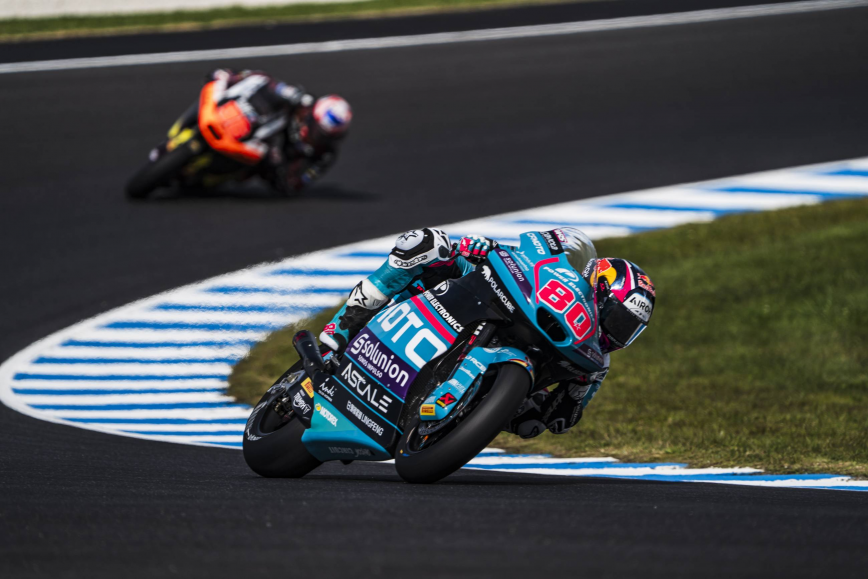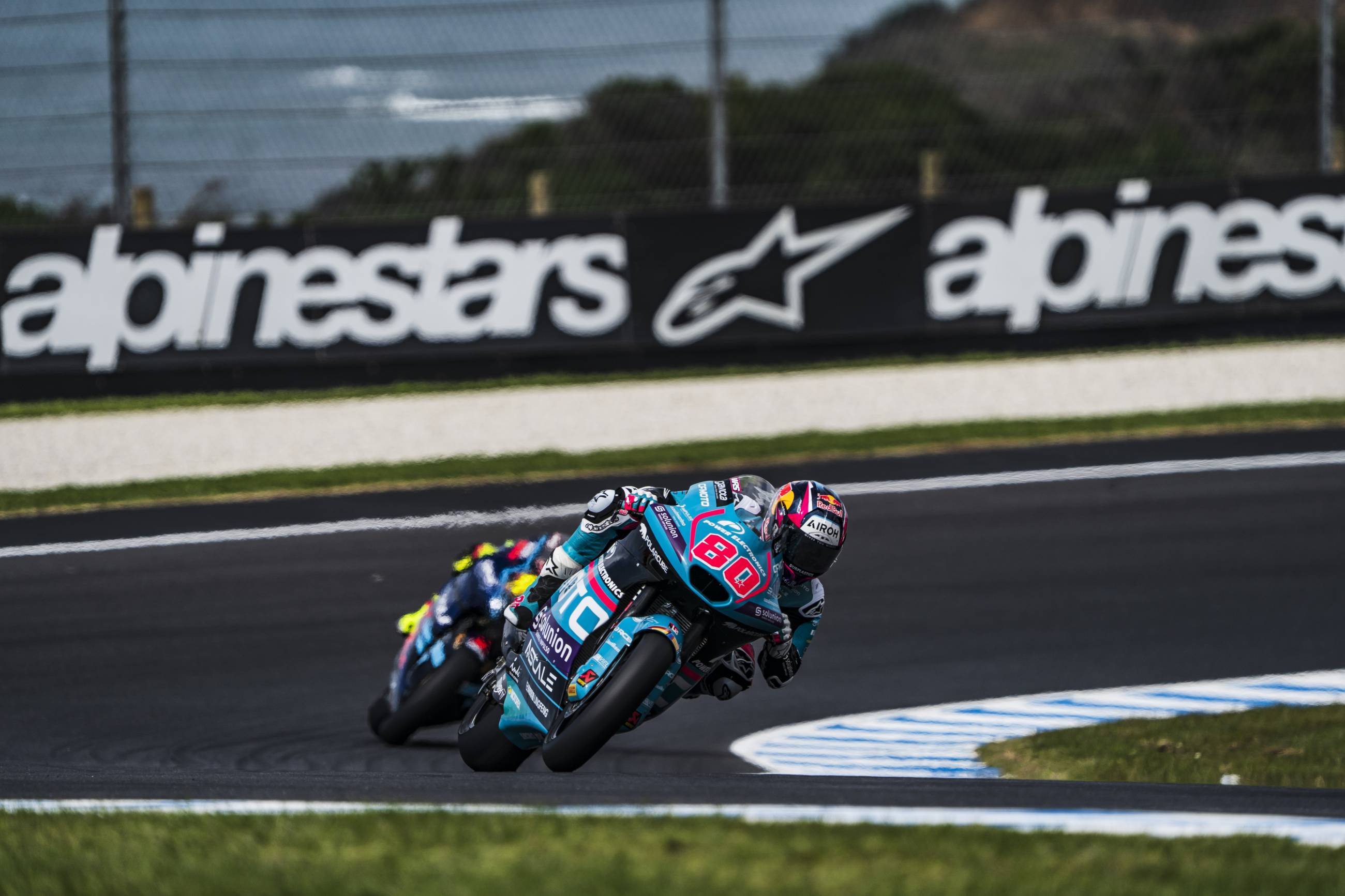 3º David Alonso 1:30.535 (+0.228): "Tenía curiosidad por rodar con la Moto2 aquí en Phillip Island porque con la Moto3 ya se iba muy rápido. Me ha encantado, con el viento y las curvas rápidas la adrenalina está altísima. Se va muy rápido y tienes que bailar con la moto porque se mueve mucho. He tratado de fluir de la misma manera que cuando haces motocross y de agarrarme bien con las piernas. Piloto la moto con mayor soltura y estoy más presente en el momento. Para ir más cómodo mañana, tenemos que mejorar en el primer sector o en tratar de ser un poco más constantes. No espero nada porque cuando estoy más centrado los resultados no salen igual. Quiero disfrutar y ver hasta dónde podemos llegar".