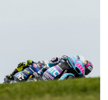 La carrera de Moto2 en Phillip Island ha sido una de las más exigentes físicamente del curso de 2025. Las fuertes rachas de viento han dificultado el pilotaje de principio a fin, pero los pilotos del CFMOTO Power Electronics Aspar han realizado una gran gestión a lo largo de las 23 vueltas disputadas. David Alonso ha protagonizado una gran salida con la que ha escalado hasta las posiciones de podio. En las primeras vueltas se han producido varios cambios de posiciones en el grupo delantero, pero el colombiano ha sabido gestionar muy bien las energías para seguir optando al top 3 hasta las últimas vueltas. El debutante de la categoría intermedia ha sacado su mejor versión y ha superado al líder del mundial a falta de seis vueltas para hacerse con la segunda posición, logrando así su tercer podio en Moto2. Por otro lado, Dani Holgado también se ha enfrentado a una carrera muy desafiante. El español ha perdido algunas plazas en las primeras vueltas y ha caído hasta la novena posición. Pasado el ecuador de la carrera, el piloto del CFMOTO Power Electronics Aspar ha mejorado sus sensaciones y ha podido incrementar el ritmo para recuperar posiciones. No contento con la quinta posición, el también debutante ha seguido empujando en la última vuelta para adelantar a un último rival y cruzar la línea de meta en cuarta posición.