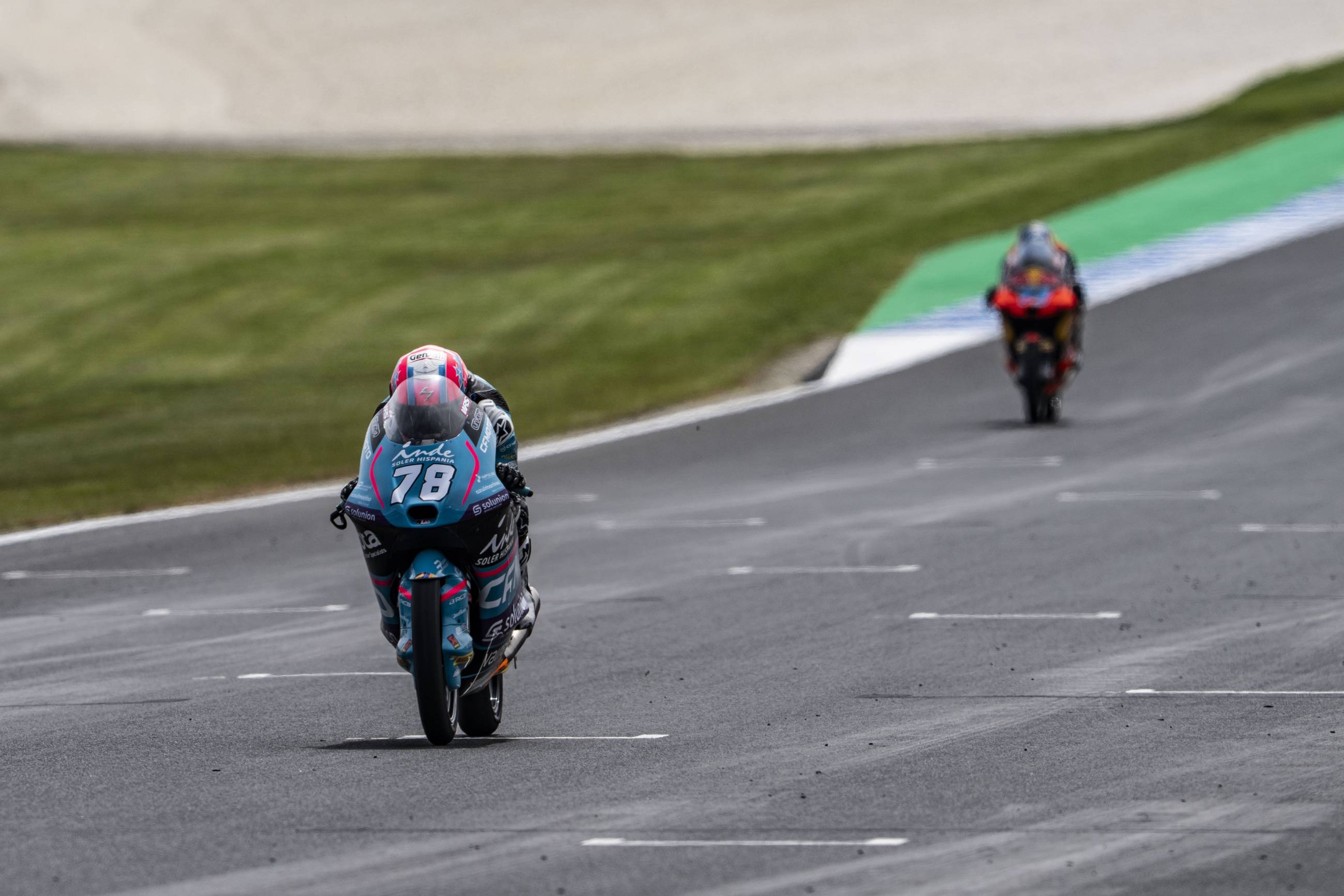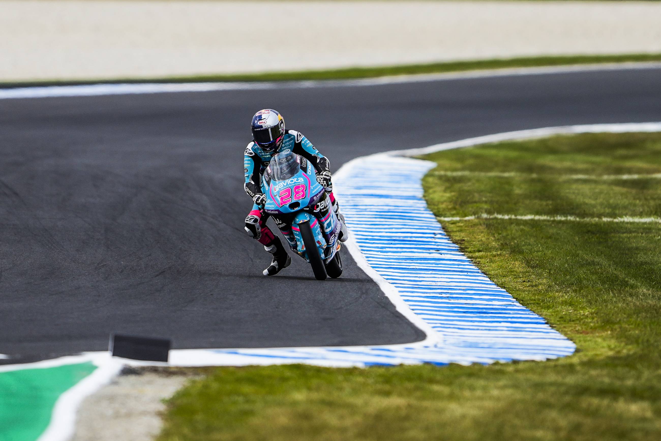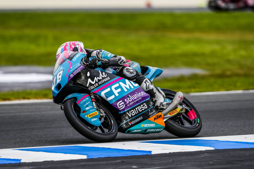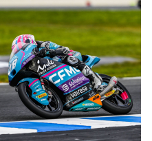 Con la Q2 asegurada, la sesión de esta mañana prometía ser una buena oportunidad para realizar los últimos ajustes antes del entrenamiento cronometrado. Sin embargo, las cambiantes condiciones en Phillip Island han obligado a modificar el desarrollo del plan de trabajo. La lluvia ha hecho acto de presencia en los últimos minutos, por lo que Joel Esteban y Máximo Quiles apenas han tenido ocasión de dar vueltas en condiciones de seco. La prueba definitiva ha llegado por la tarde, cuando ambos pilotos han salido a la pista dispuestos a conseguir un buen tiempo en los primeros minutos del cronometrado. Esteban ha mostrado una gran versión de sí mismo y se ha situado entre los tres primeros con una de sus primeras vueltas. El piloto del CFMOTO Gaviota Aspar Team ha conseguido su mejor marca del fin de semana: un 1:34.563 que le ha colocado en la séptima posición, a medio segundo de la pole. Este resultado, además, es su mejor posición en un cronometrado en el Mundial. Por otro lado, su compañero de equipo ha tenido que dar el máximo en su estreno en uno de los circuitos más rápidos del calendario. El debutante de Moto3 ha rodado en solitario en busca de un buen tiempo y ha sido capaz de rodar por debajo del 1:35 después de la caída sufrida por la mañana. Quiles ha conseguido su mejor tiempo en la segunda vuelta y acompañará a Esteban en la tercera fila de la parrilla, en novena posición.