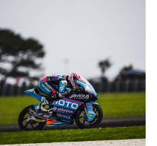 Joel Esteban y Máximo Quiles han superado un complicado sábado en Phillip Island. Los pilotos del CFMOTO Gaviota Aspar Team han trabajado para conseguir una buena posición de salida para este domingo pese a las cambiantes condiciones. Joel Esteban ha sido séptimo, su mejor resultado en un sábado en su trayectoria mundialista, mientras que Máximo Quiles ha sido noveno. El australiano Joel Kelso se ha llevado la pole ante la afición local, por delante de José Antonio Rueda y de Luca Lunetta, segundo y tercero respectivamente.