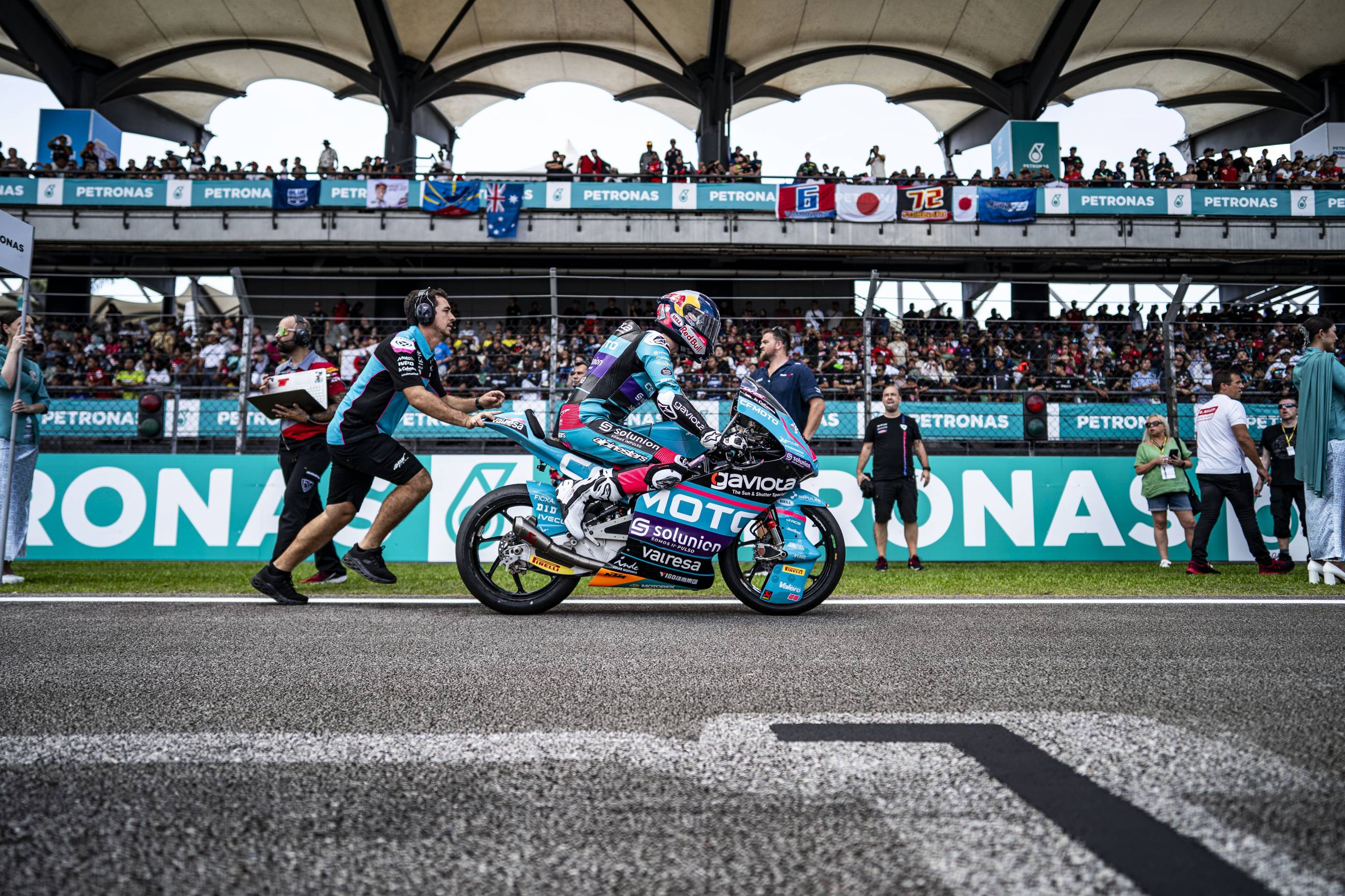 El Gran Premio de Malasia ha tenido un amargo final para los pilotos de Moto3. Tras el duro incidente entre José Antonio Rueda y Noah Dettwiler en la vuelta de formación, la carrera de la categoría pequeña se ha retrasado más de una hora y se ha visto reducida a tan solo diez vueltas. Las altísimas temperaturas, con más de 55 grados en la pista, han puesto a prueba tanto a las motos como a los pilotos. Una vez se ha apagado el semáforo, Máximo Quiles ha alcanzado rápidamente las posiciones de podio y ha tratado de mantenerse en ellas, aunque peleando dentro de un amplio grupo. El piloto del CFMOTO Gaviota Aspar Team se ha visto envuelto en una intensa batalla en la que en la que no había margen de error debido al bajo número de vueltas. El español, después de un par de sustos, finalmente ha cruzado en la línea de meta en séptima posición. Pese a no conseguir el podio, este resultado le ha valido para proclamarse como el mejor debutante de Moto3 en 2025 con 237 puntos y ocho podios, incluyendo dos victorias. Además, mantiene sus opciones de luchar por el subcampeonato con Ángel Piqueras a falta de dos carreras. Por su parte, su compañero Joel Esteban se ha visto obligado a remontar posiciones desde la parte de atrás de la parrilla. El piloto del CFMOTO Gaviota Aspar Team se ha mantenido en el grupo trasero y ha tratado de alcanzar las posiciones de puntos, pero la falta de agarre de los neumáticos le ha impedido pilotar con mayor soltura y se ha tenido que conformar con terminar la carrera en decimoséptimo lugar.