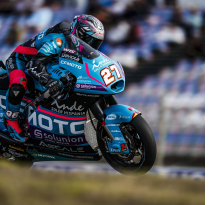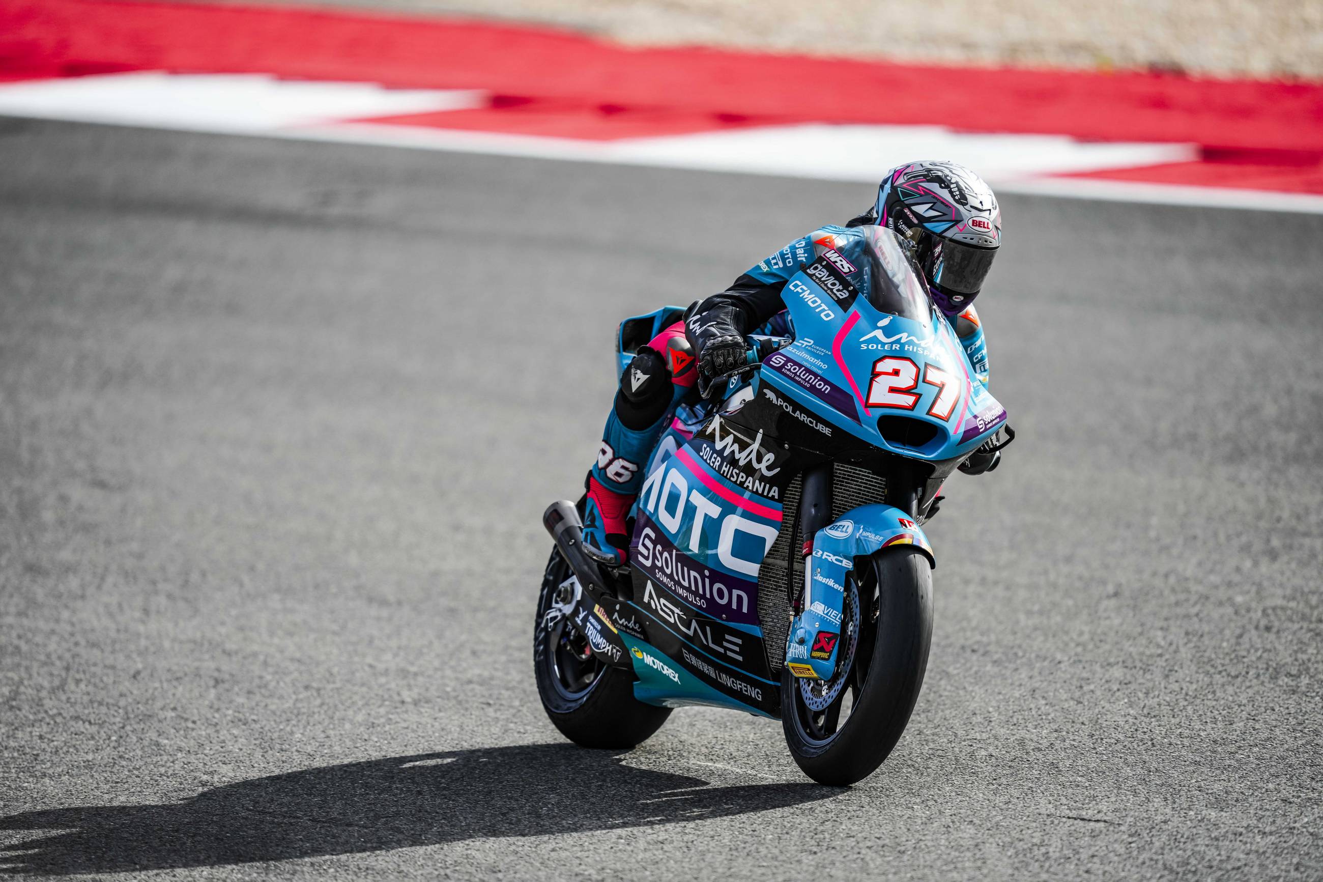 La primera jornada del Gran Premio de Portugal ha finalizado con sensaciones muy positivas para el CFMOTO Inde Aspar Team. Dani Holgado y David Alonso han completado el entrenamiento libre de esta mañana con el objetivo de adaptarse a uno de los circuitos más técnicos del calendario. Por la tarde, ambos pilotos han salido a la pista dispuestos a conseguir un hueco en la Q2 de este sábado. Los debutantes de la categoría intermedia han aprovechado la experiencia adquirida en el test de pretemporada en Portimao para seguir mejorando sus tiempos y ocupar un hueco en el top 10 de la clasificación. A falta de solo dos minutos para dar por concluida la jornada, David Alonso ha sufrido una caída cuando era séptimo, a medio segundo del tiempo de referencia. El colombiano ha sido testigo posteriormente de cómo su compañero de equipo Dani Holgado también sufría una caída en el mismo punto, justo una vuelta después, cuando rodaba en sexta posición. Ninguno de ellos ha sufrido consecuencias físicas y tampoco han sido superados por ninguno de sus rivales, por lo que mañana podrán optar a las primeras posiciones de la parrilla de salida.